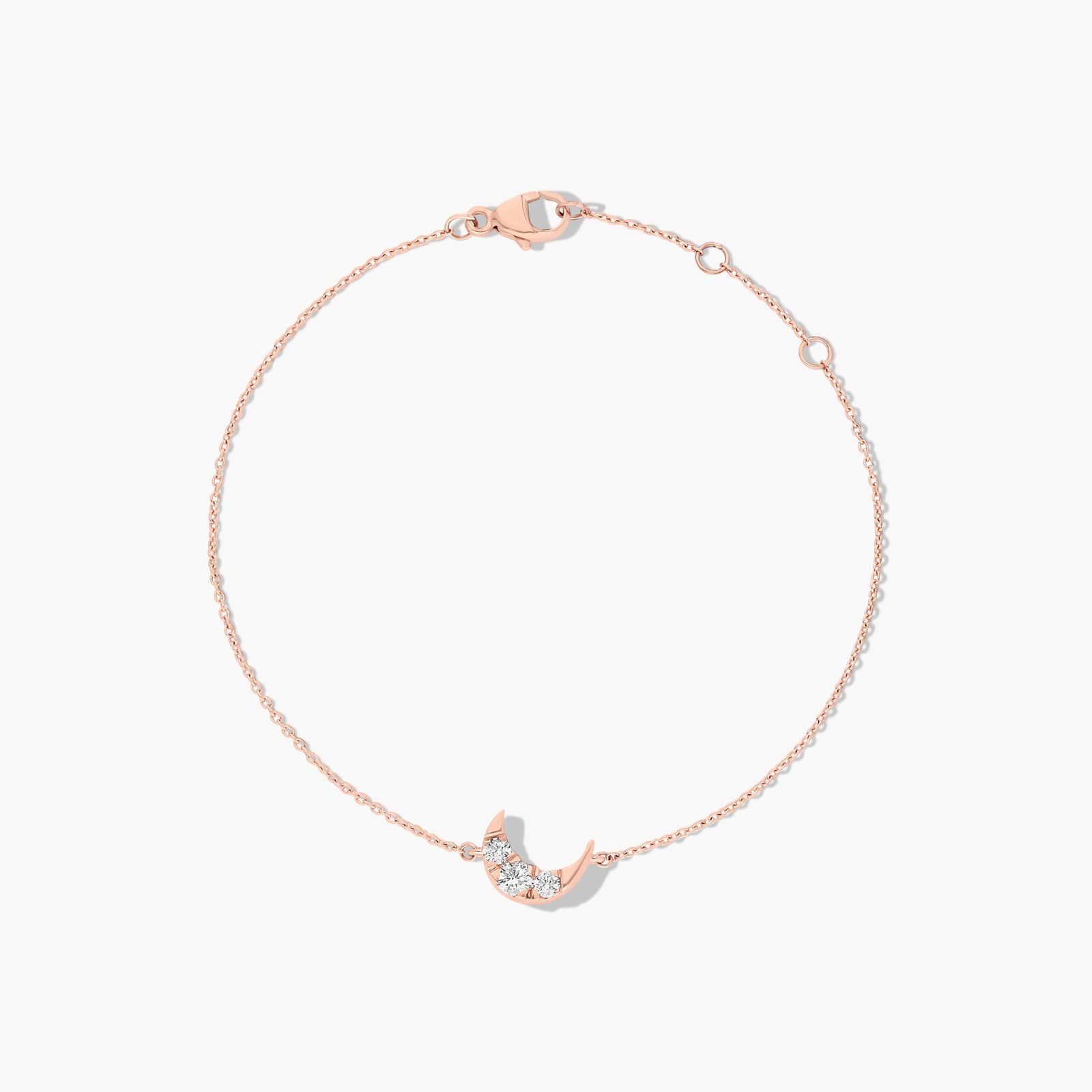 14K Rose Gold Dainty Diamonds Pavé Crescent Moon Bracelet