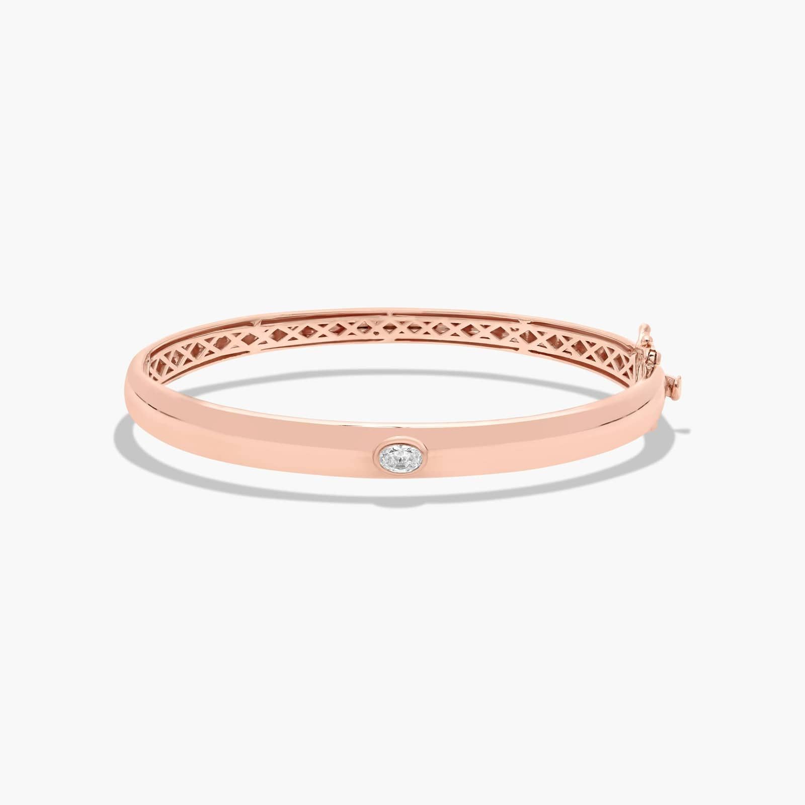 14K Rose Gold Fancy Bezels Lab Grown Oval Diamond Bangle Bracelet