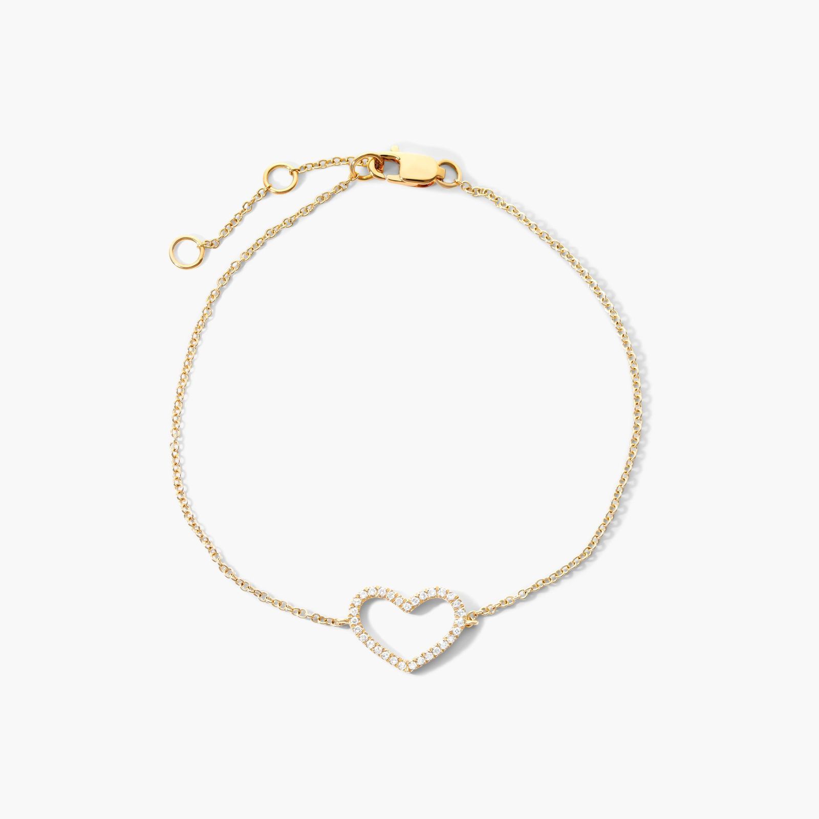 Open Heart And Chain Diamond Bracelet In 14K Yellow Gold