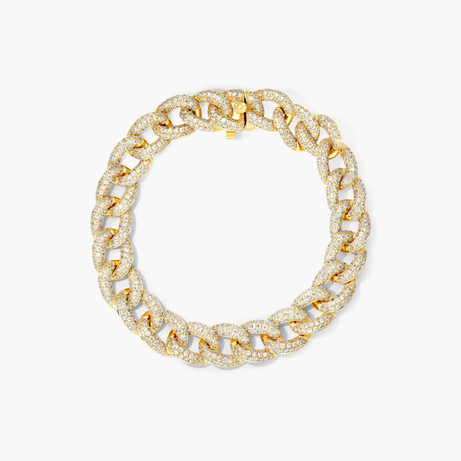 Not for the faint of the heart. This statement curb chain bracelet is covered with dazzling pave diamonds to add elegant sparkle to this bold and modern piece.