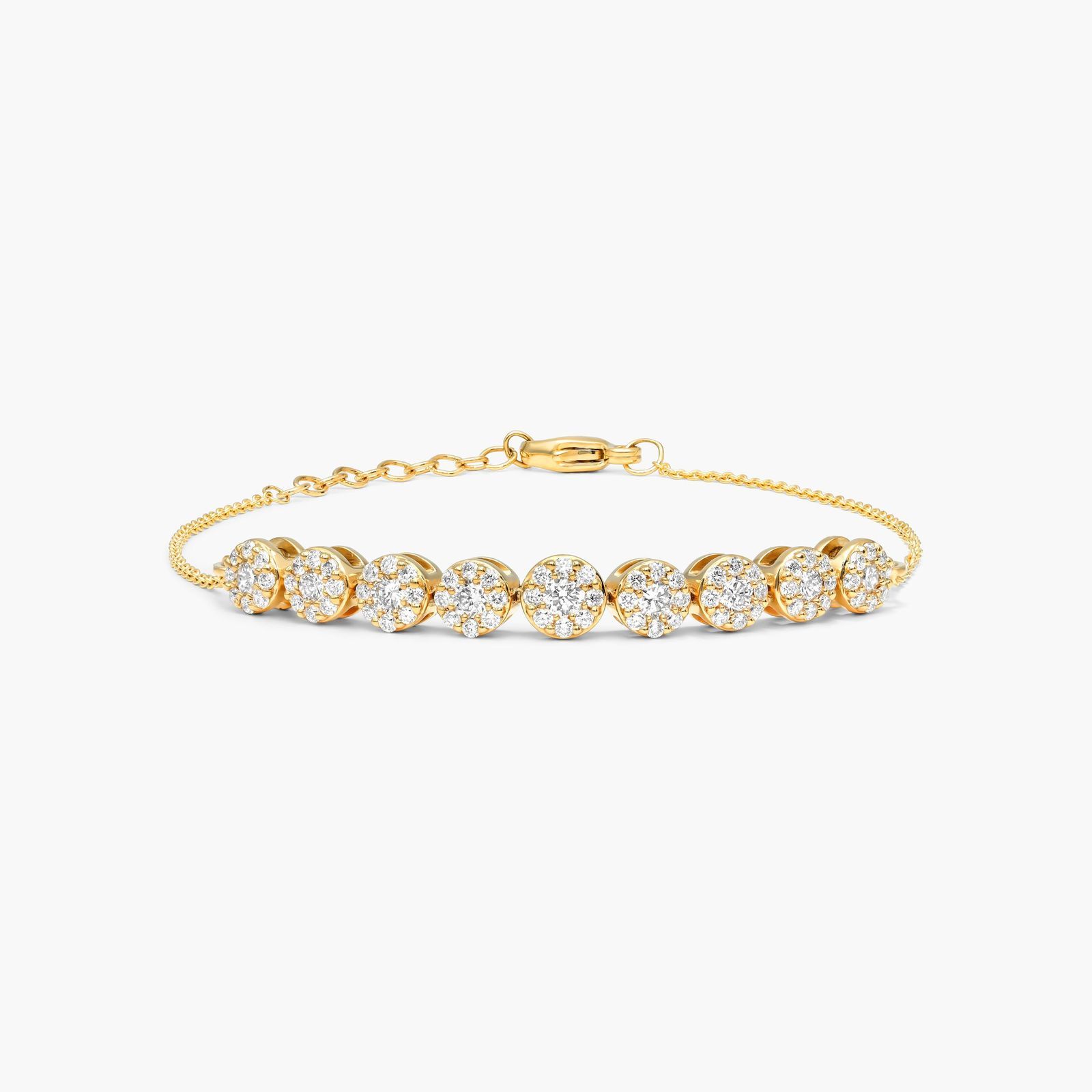 Regal and radiant, these Lab-Grown diamond hoop earrings are perfect for that special evening out. Fashioned in 14K gold, this chic choice shimmers with a row of Lab-Grown diamond clusters is attached to a cable chain bracelet adjusts up to 7.0 inches in length and secures with a lobster clasp.