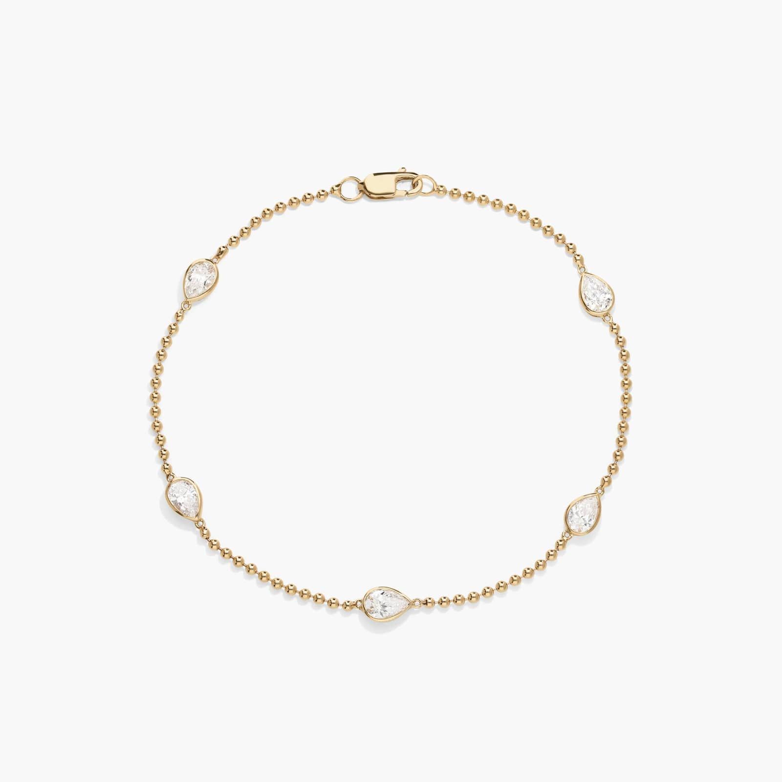 Station bracelets combine the brilliance of lab-grown diamonds with the beauty of 14k yellow gold chains. Wear this east-west beaded bezel pear shaped lab-grown diamond station bracelet on its own or as part of a trendy bracelet stack.