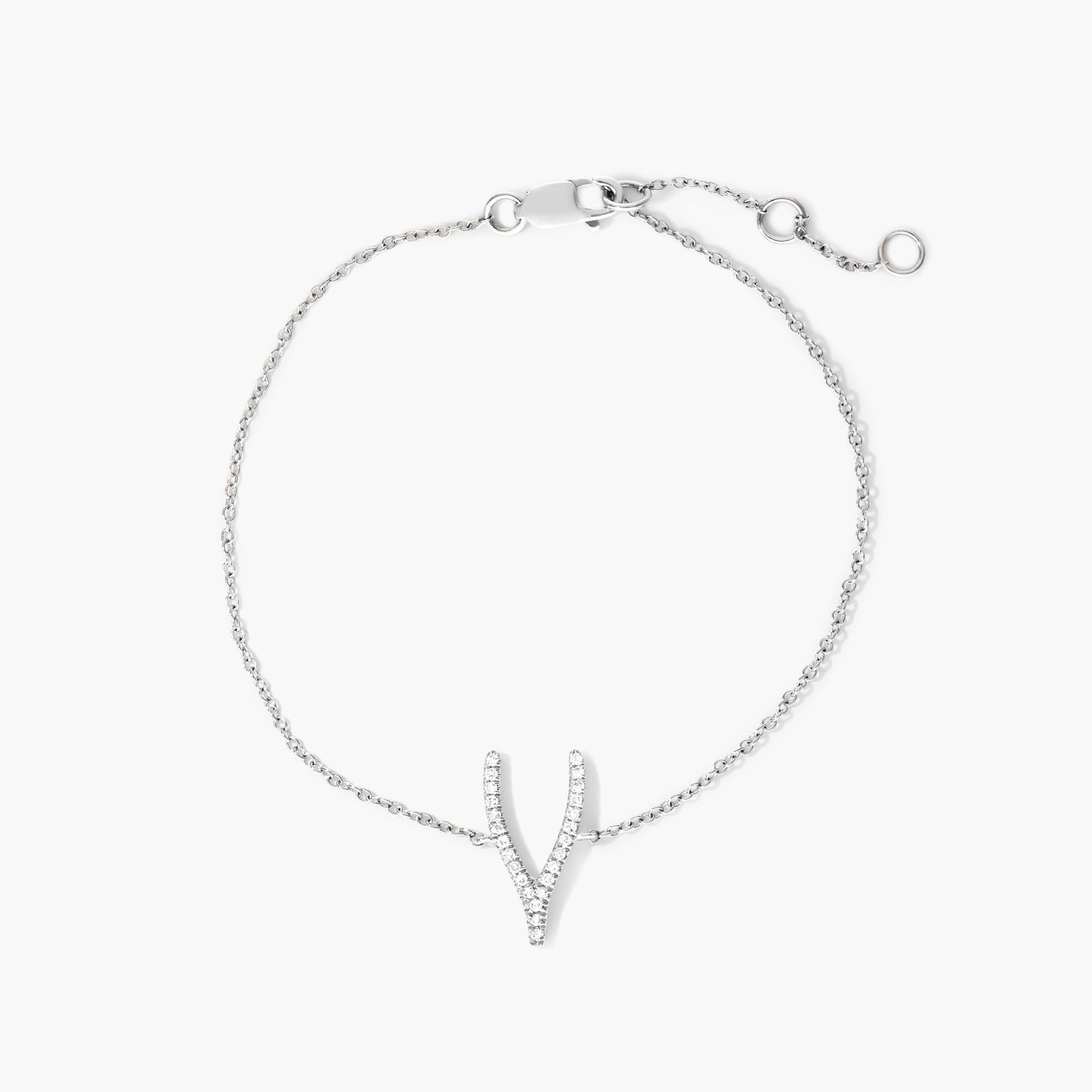 Wishbone And Chain Diamond Bracelet In 14K White Gold