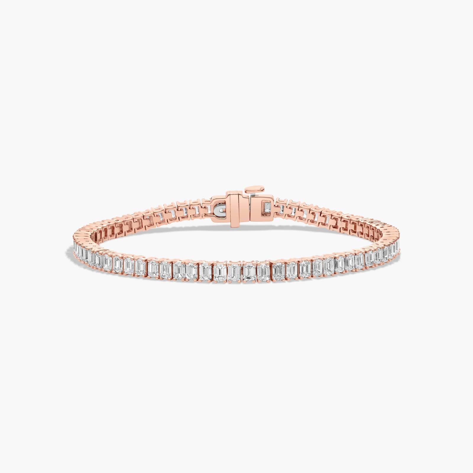 This classy tennis bracelet features the slender yet bold reflections of the emerald cut diamonds. This elegant gleam instantly lends splendor and sophistication.