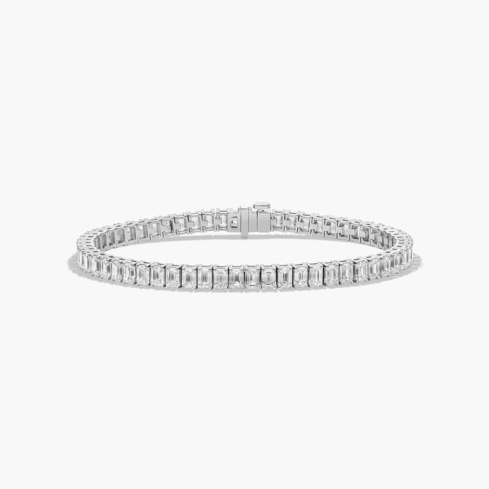 This classy tennis bracelet features the slender yet bold reflections of the emerald cut lab-grown diamonds. This elegant gleam instantly lends splendor and sophistication.