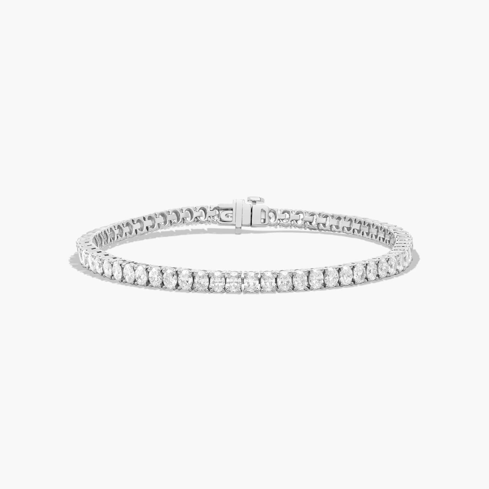 The distinct and elegant outline of the oval shape diamonds combined with their beautiful scintillation make this tennis bracelet the perfect piece to add to your jewelry collection.