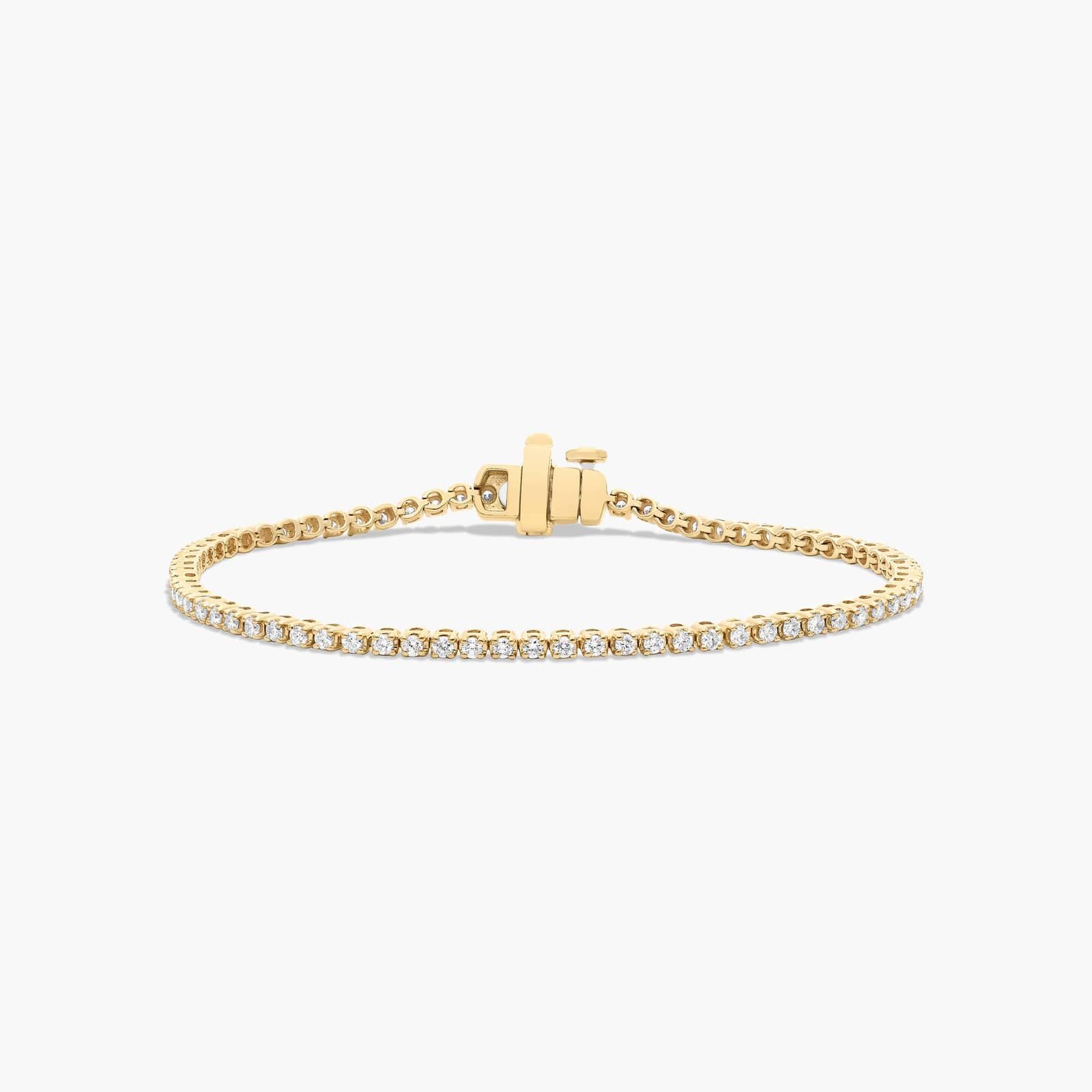 This classic tennis bracelet features a single row of scintillating brilliant cut diamonds set in finely crafted four prong baskets.