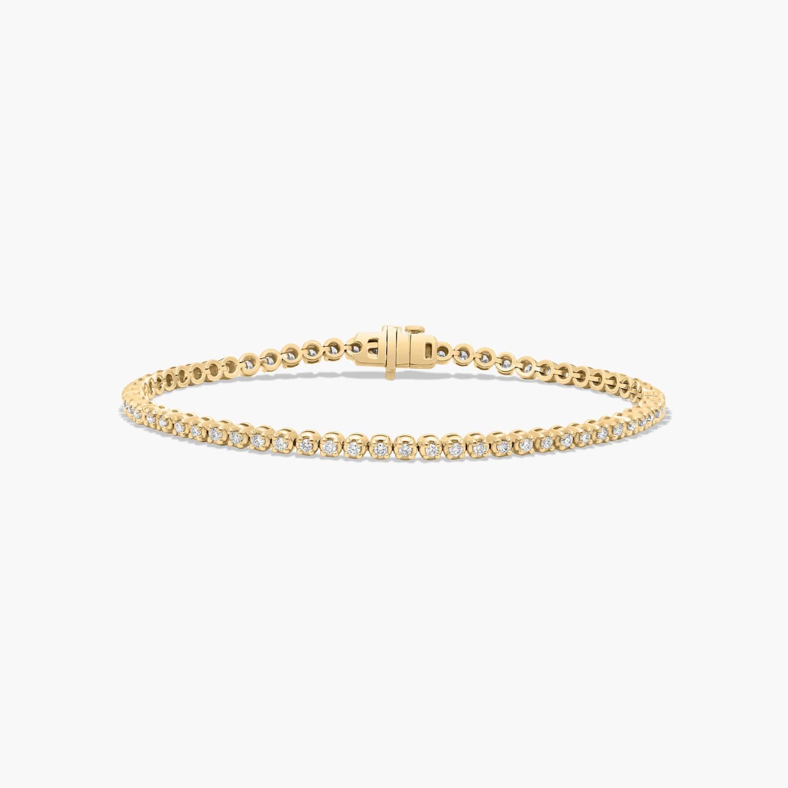 This classic tennis bracelet features a single row of scintillating brilliant cut lab-grown diamonds set in finely crafted four prong baskets.