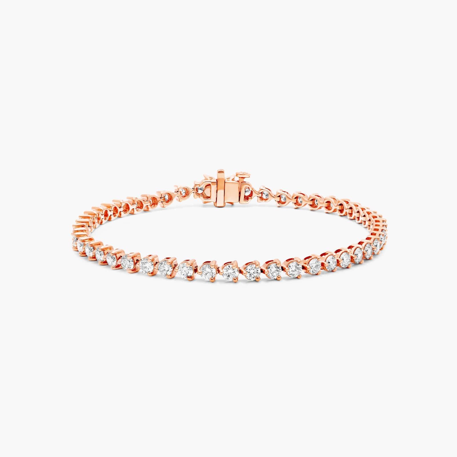 This classic tennis bracelet features a single row of scintillating brilliant cut diamonds set in finely crafted three prong baskets and closed by an elegant flower clasp.
