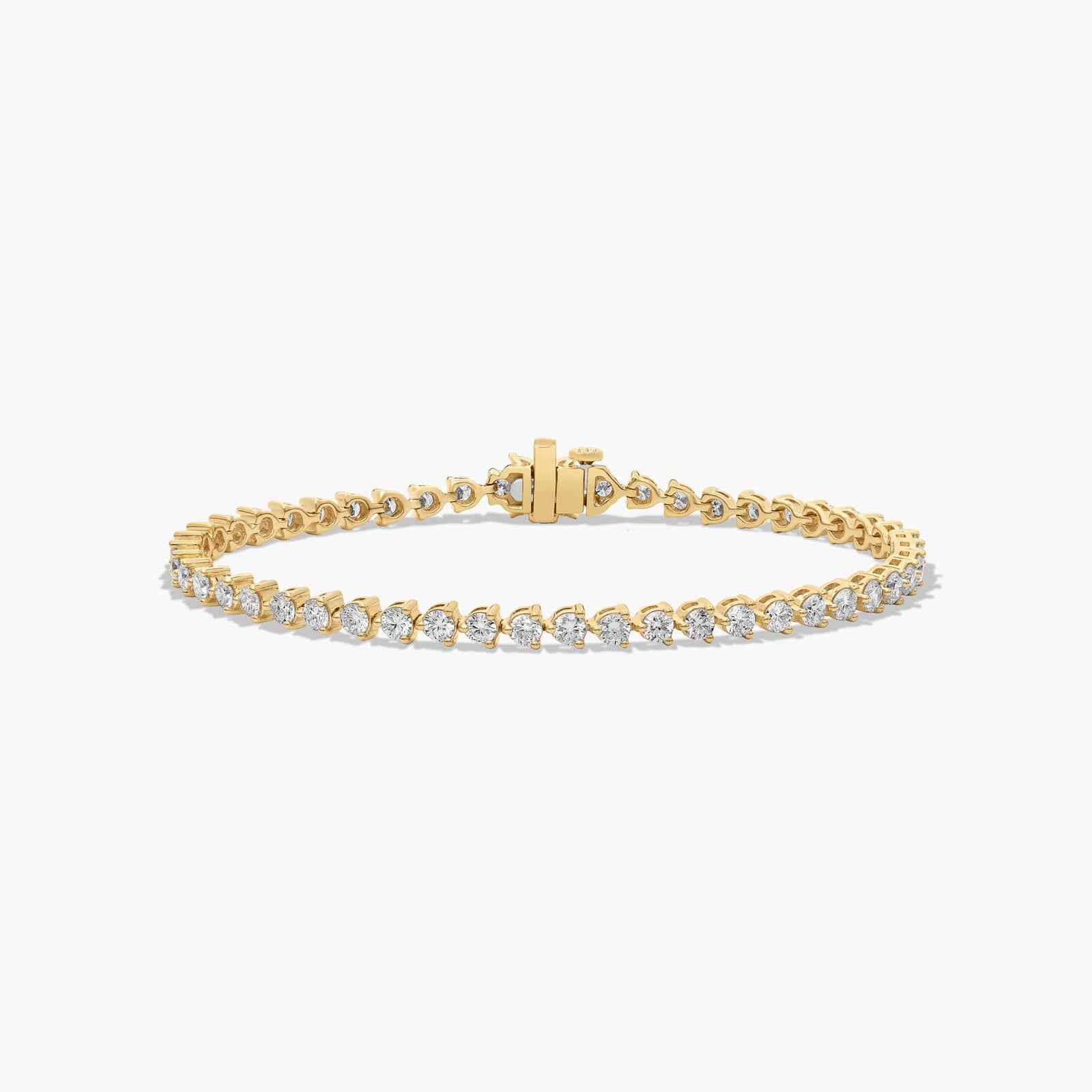 This classic tennis bracelet features a single row of scintillating brilliant cut diamonds set in finely crafted three prong baskets and closed by an elegant flower clasp.