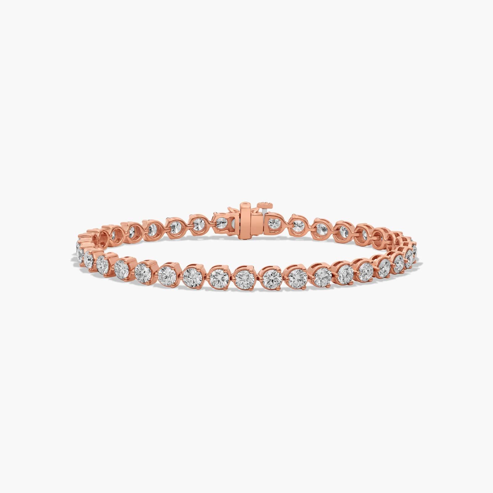 This classic tennis bracelet features a single row of scintillating brilliant cut diamonds set in finely crafted three prong baskets and closed by an elegant flower clasp.