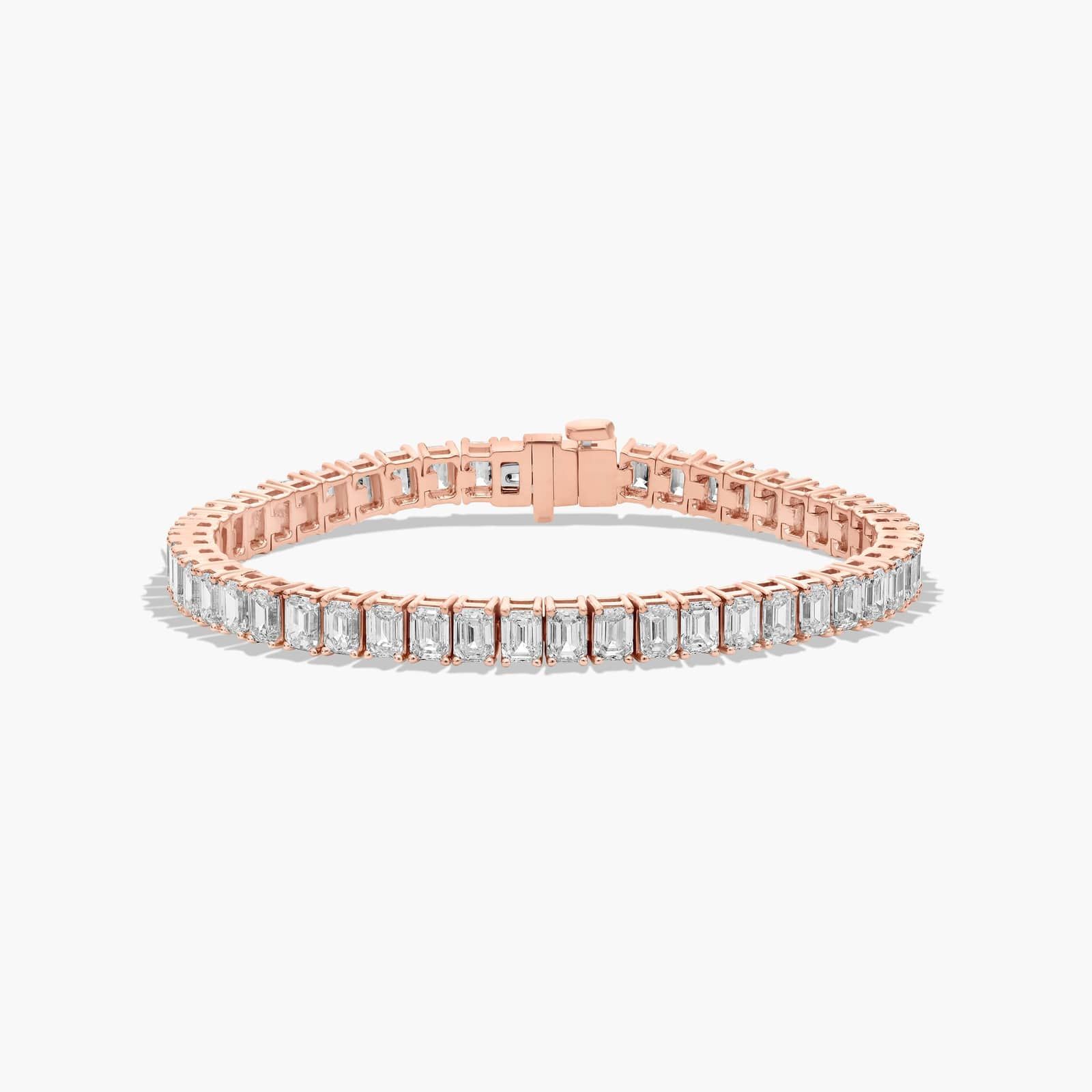 This classy tennis bracelet features the slender yet bold reflections of the emerald cut diamonds. This elegant gleam instantly lends splendor and sophistication.