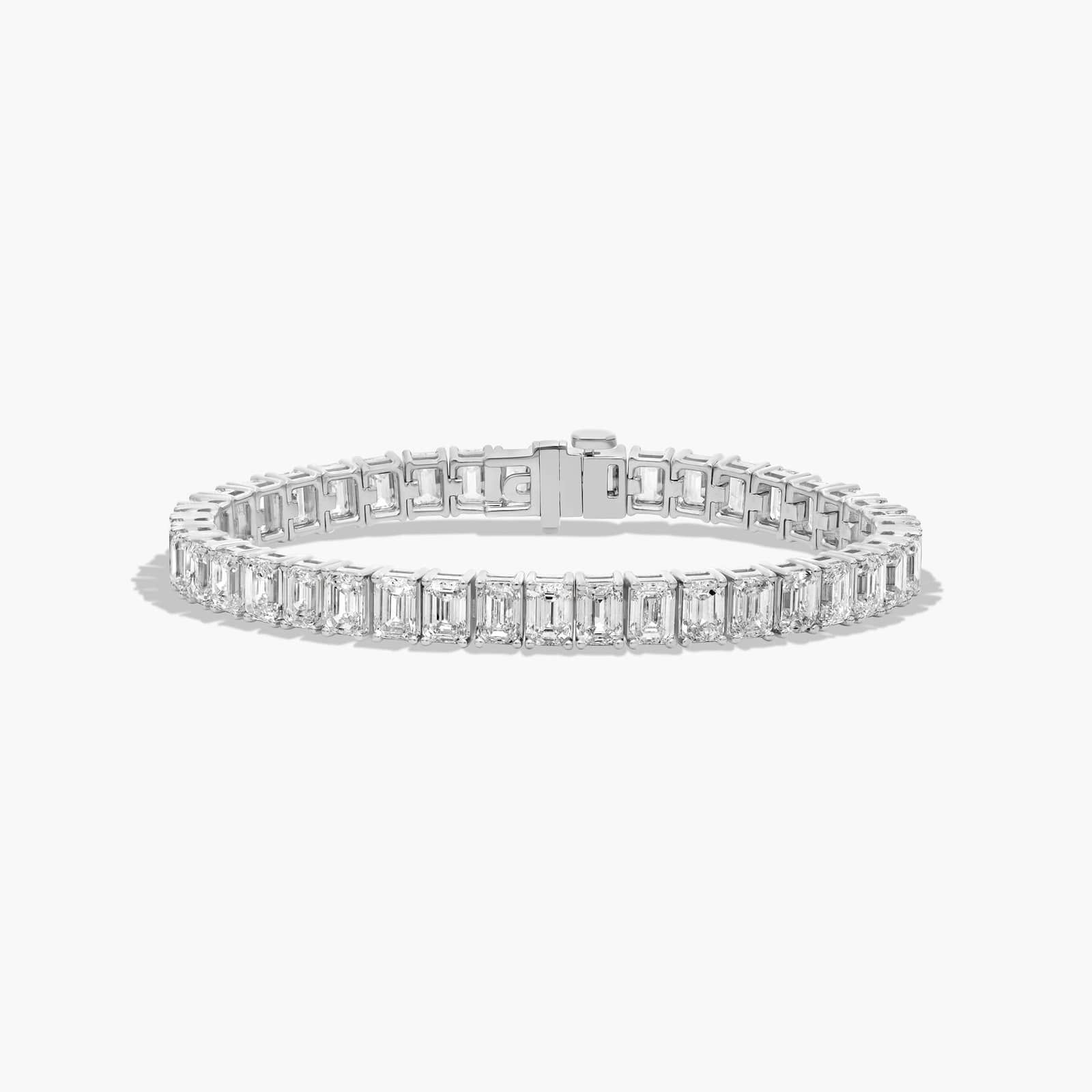 This classy tennis bracelet features the slender yet bold reflections of the emerald cut lab-grown diamonds. This elegant gleam instantly lends splendor and sophistication.