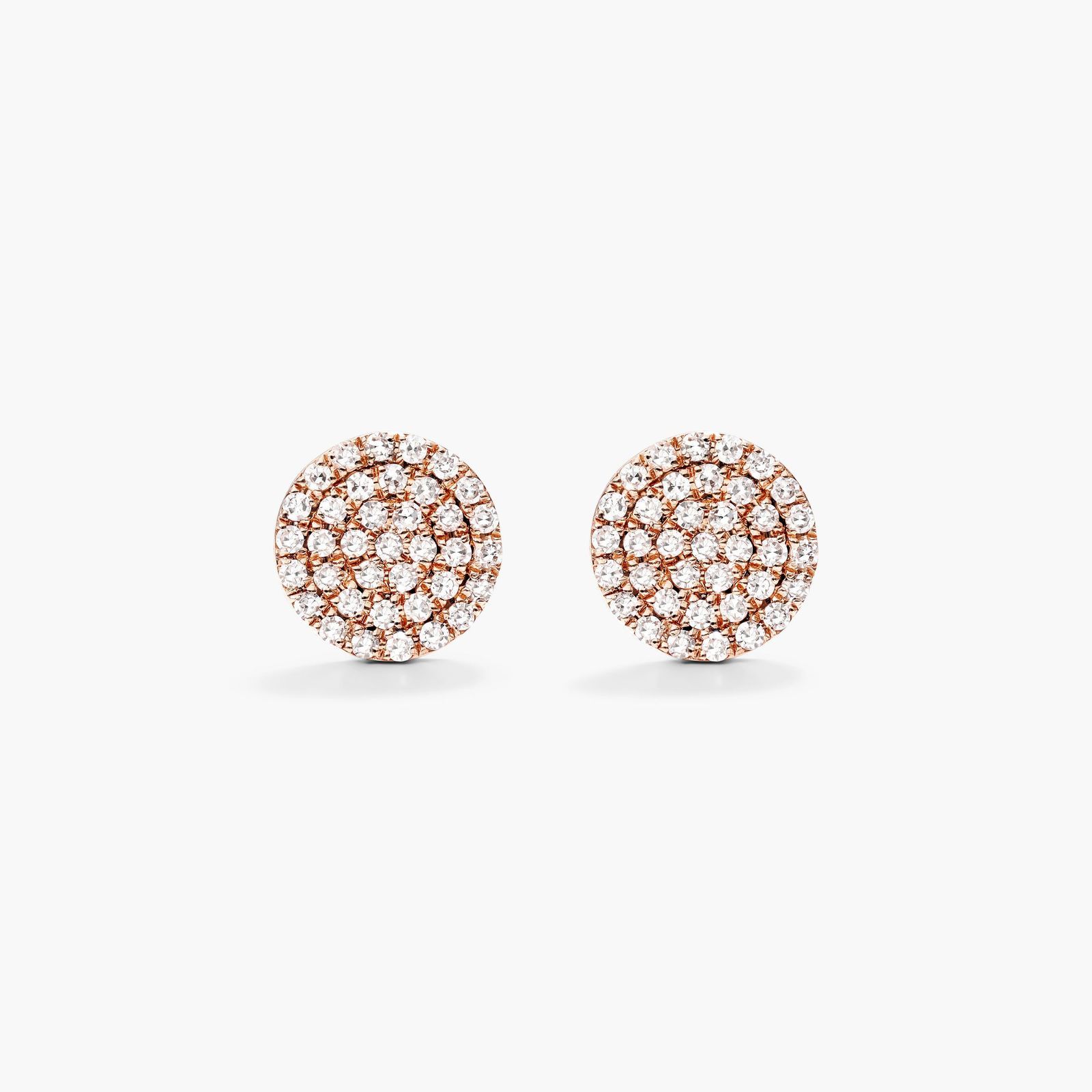 These diamond pavé circle studs are a contemporary take on a classic look. Set in 14K rose gold, they perfect for everyday wear.