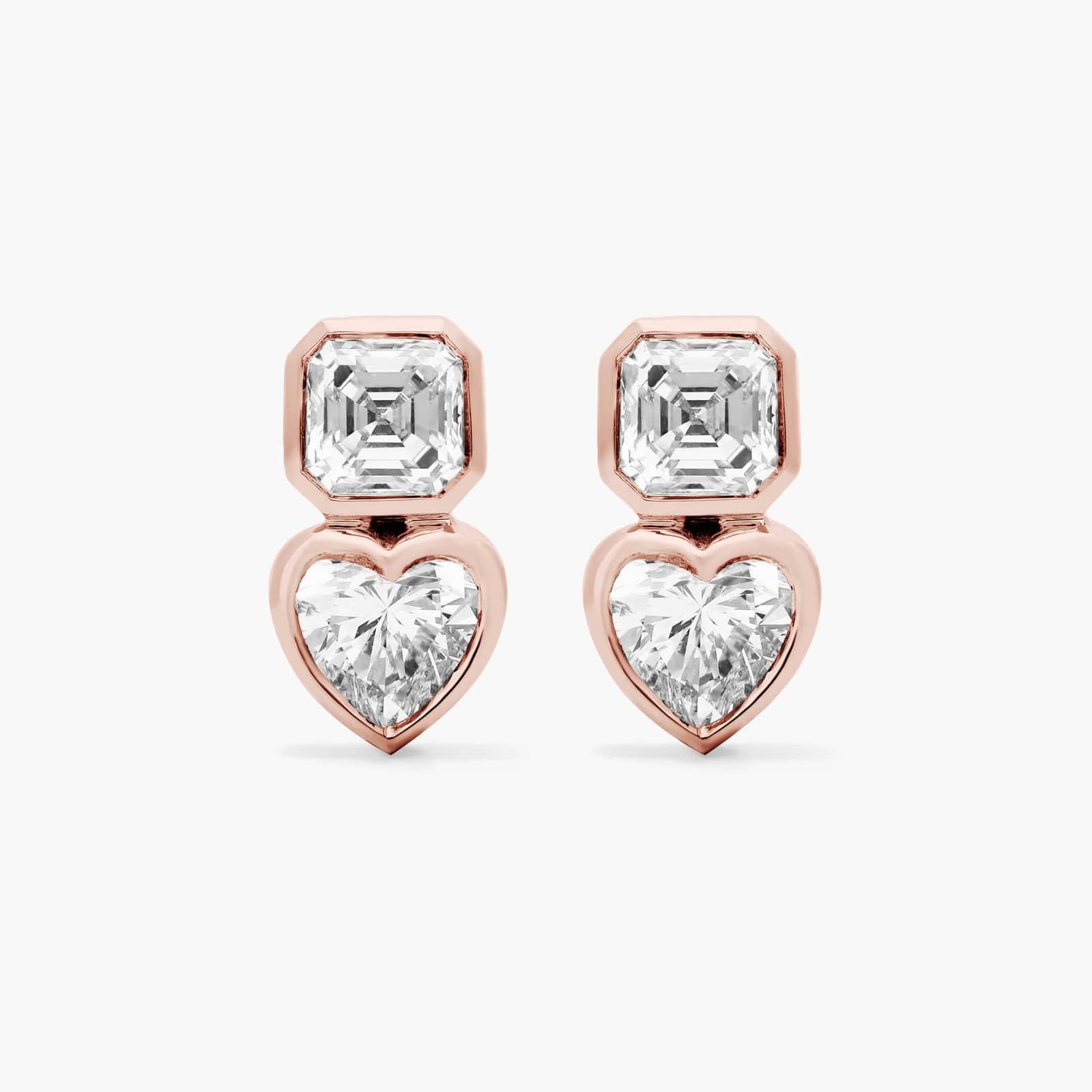Fancy Bezel Drop Earrings With Asscher Cut and Heart Shaped Lab-Grown Diamonds In 14K Rose Gold