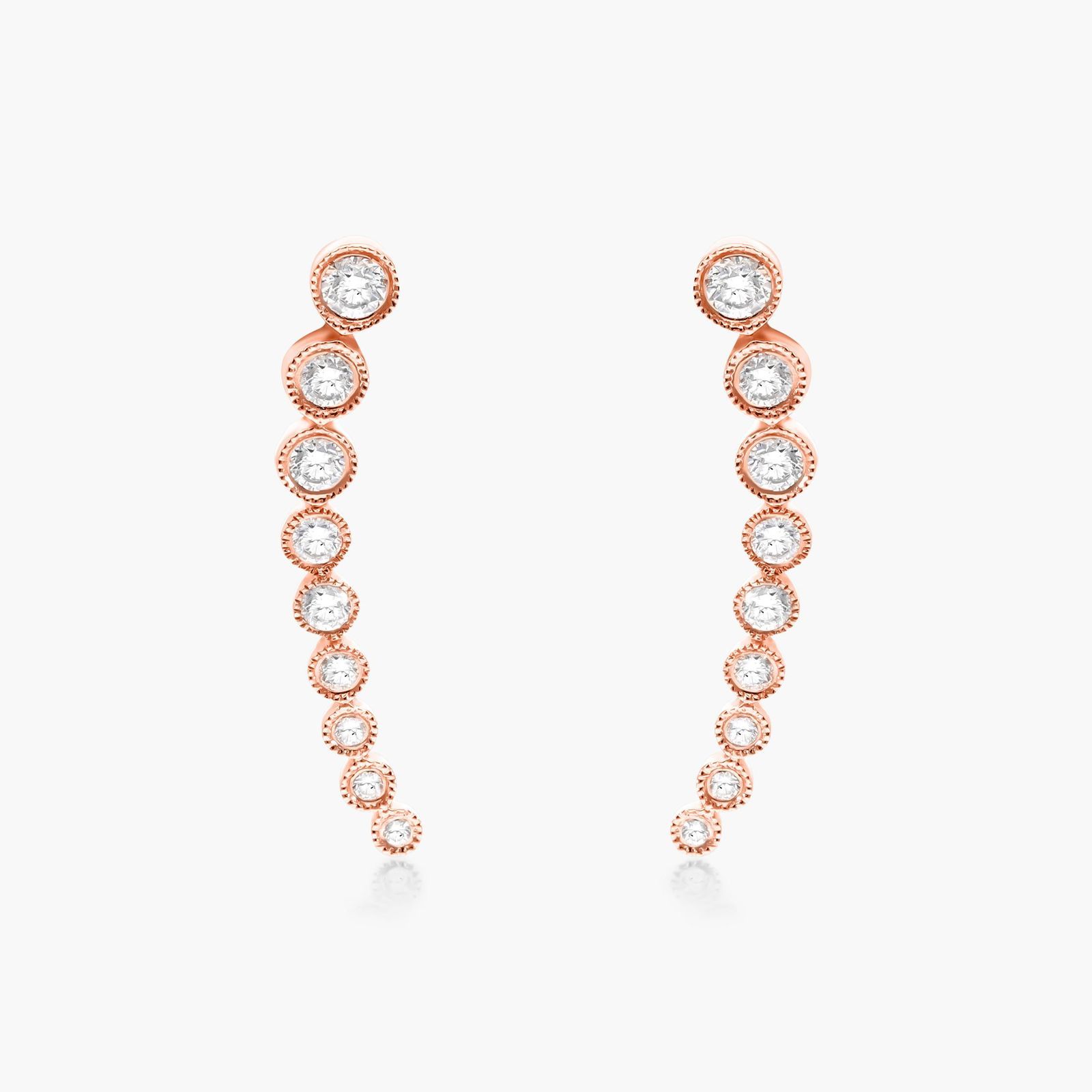 Graduated Round  Diamond Climber Earrings In 14K Rose Gold