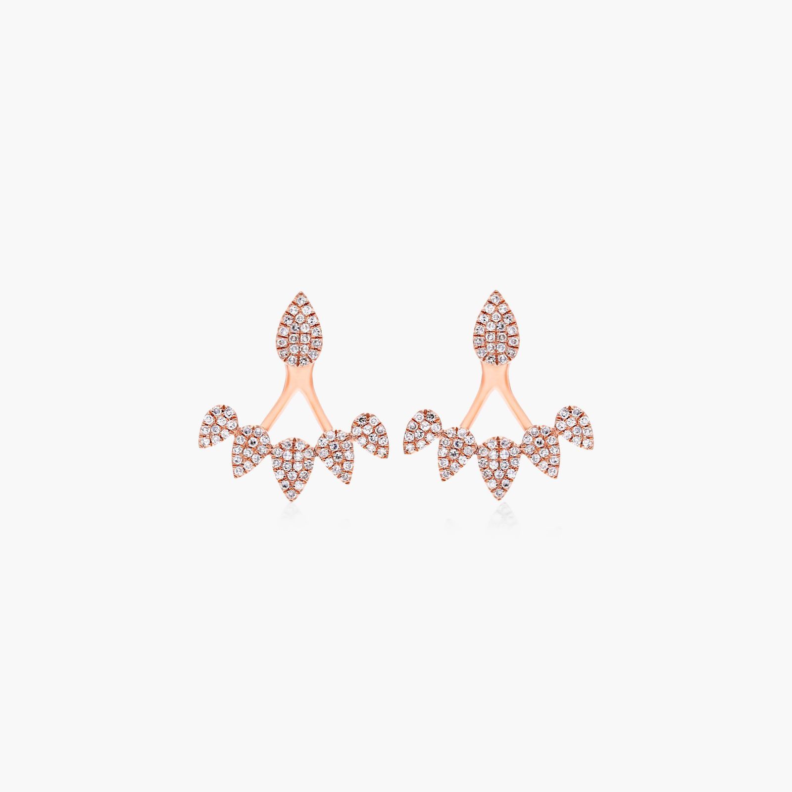 The perfect addition for the jewelry collector who has everything, these geometric diamond ear jackets make a statement. Featuring diamonds set in 14K white gold graduating pear shapes, these earrings are feminine, bold and fashion forward.