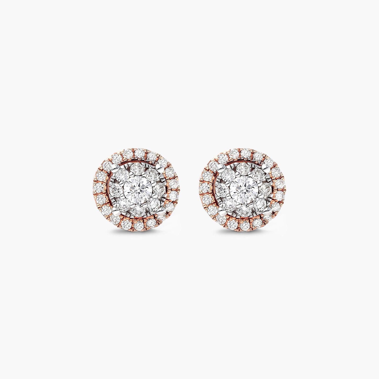 Round Halo Cluster Diamond Stud Earrings In 14K Rose Gold