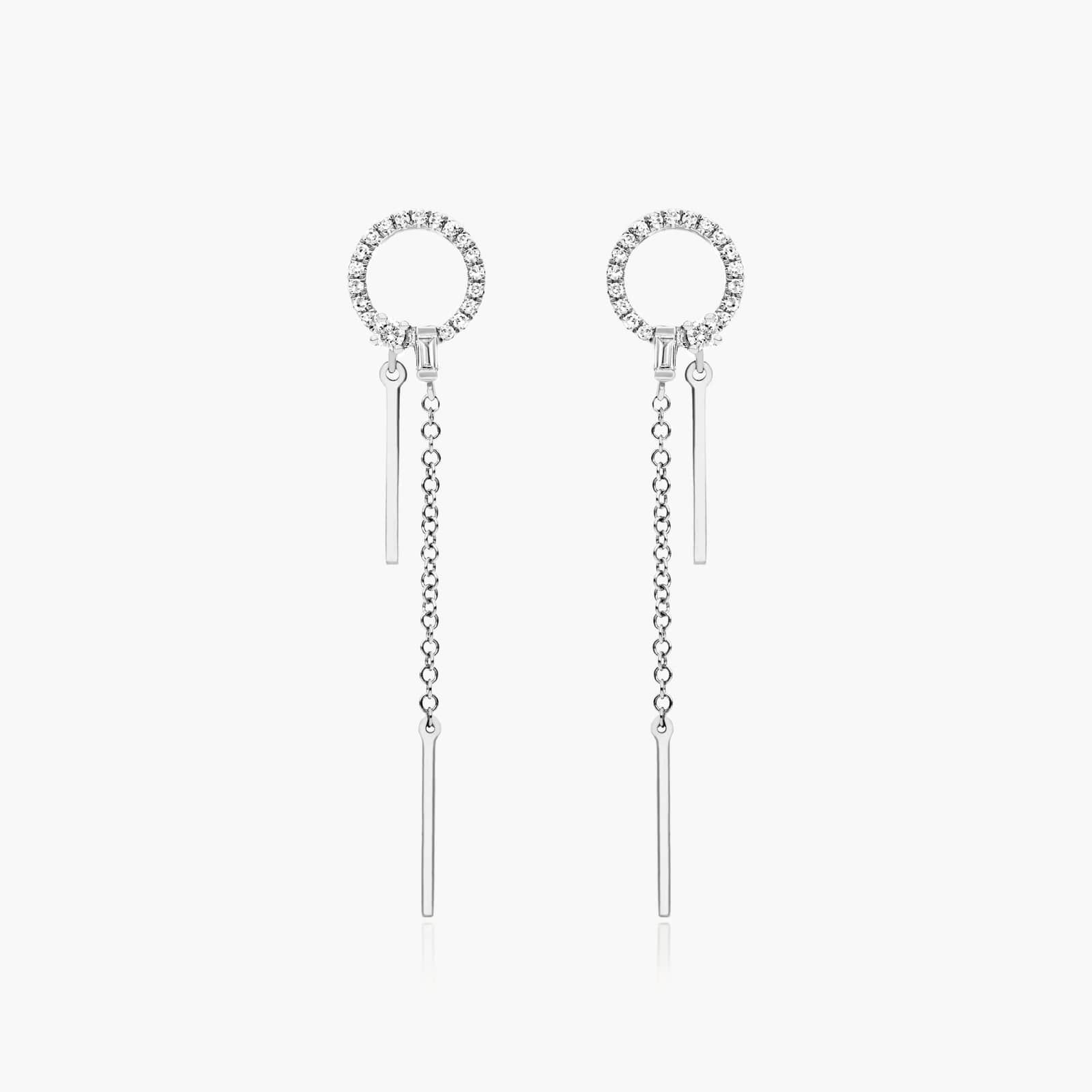 Circle Bar Diamond Drop Earrings In 14K White Gold