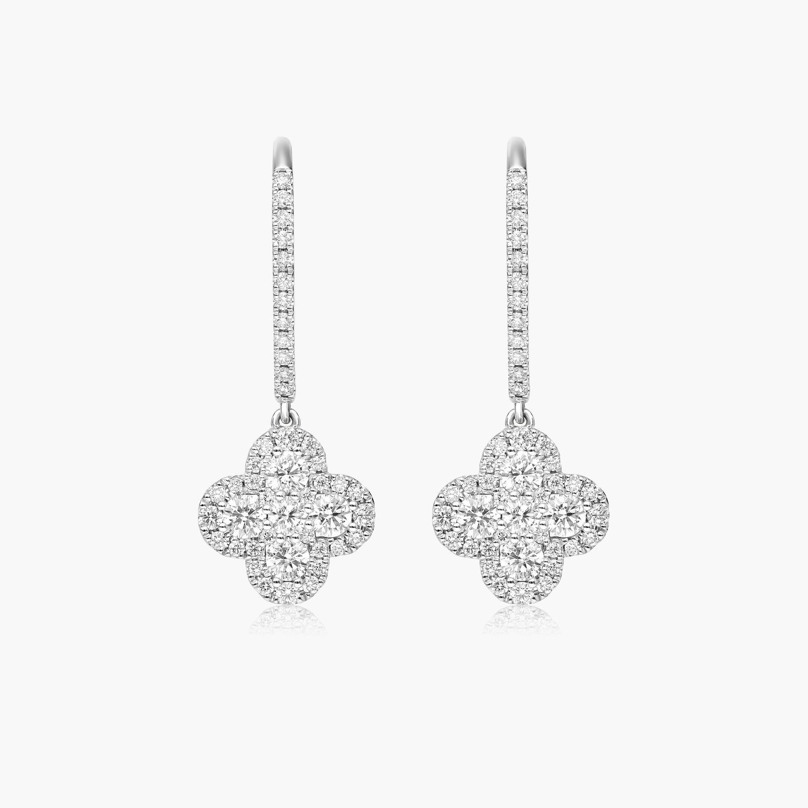 Clover Leverback Earrings With Lab-Grown Diamonds In 14K White Gold