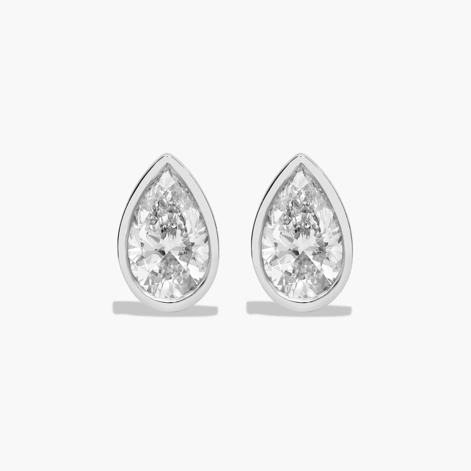 14K White Gold Fancy Bezels Lab Grown Pear Diamond Stud Earrings
