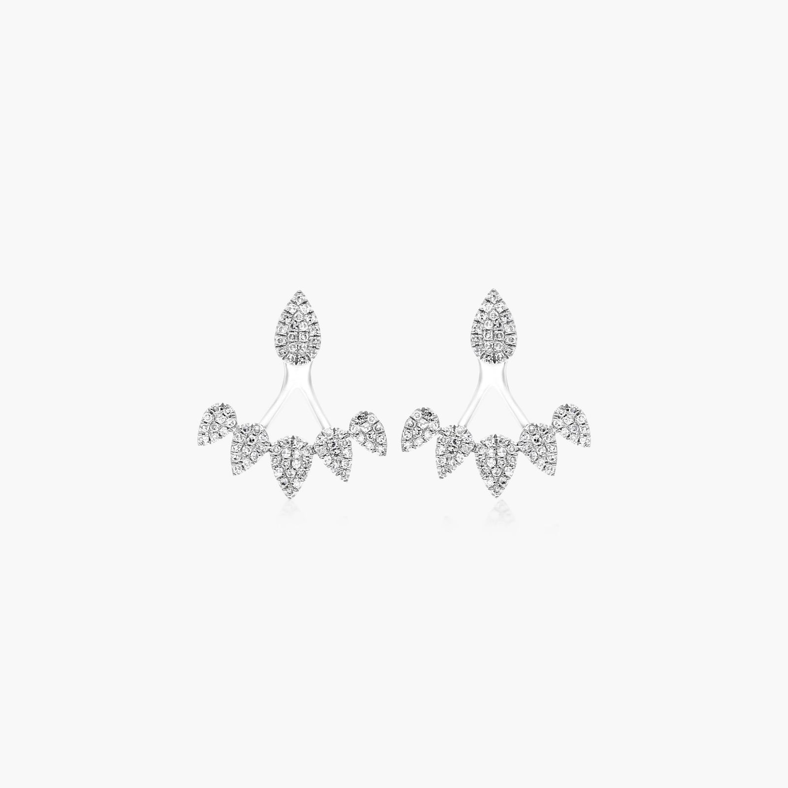 The perfect addition for the jewelry collector who has everything, these geometric diamond ear jackets make a statement. Featuring diamonds set in 14K yellow gold graduating pear shapes, these earrings are feminine, bold and fashion forward.