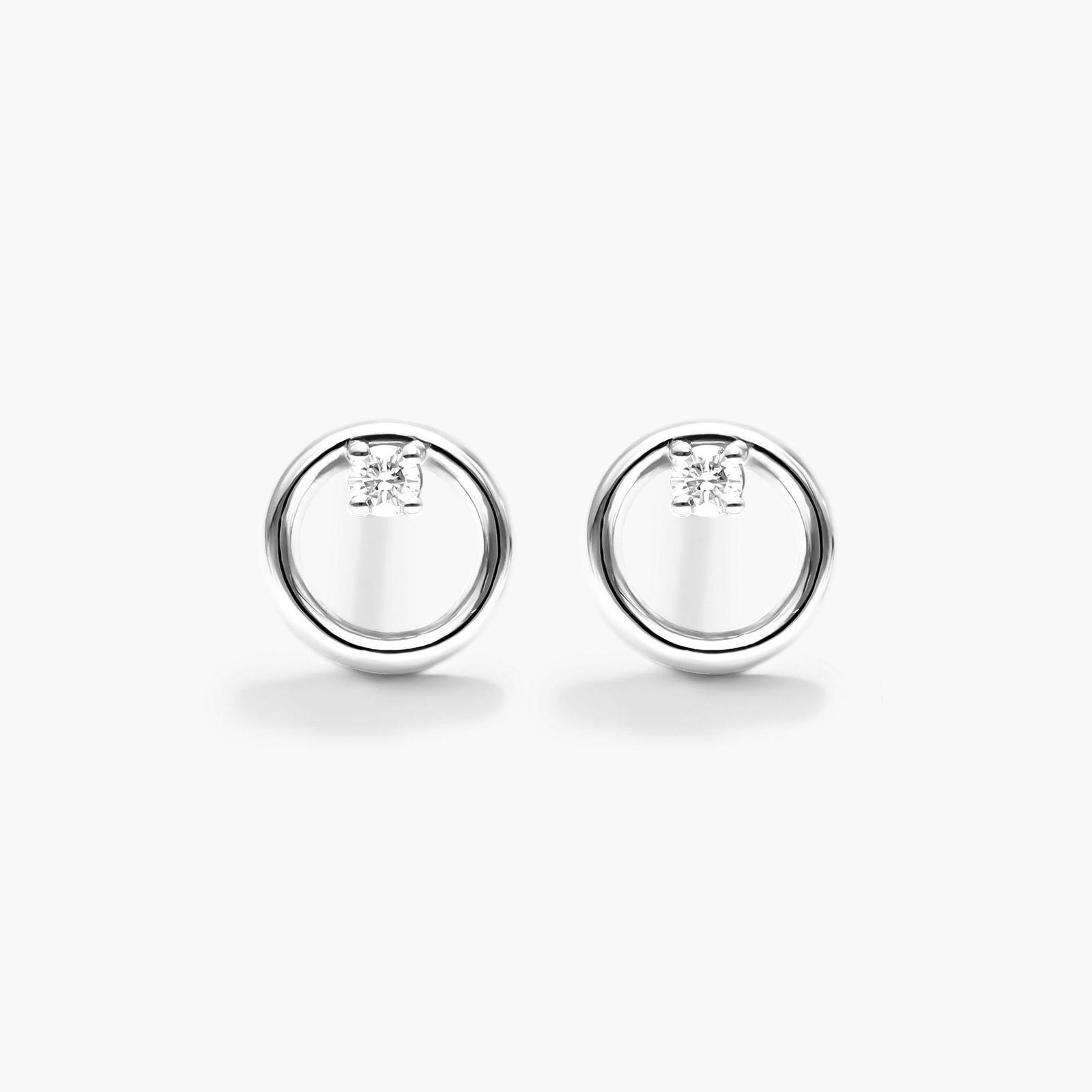 Petite Open Circle Diamond Earrings In 14K White Gold