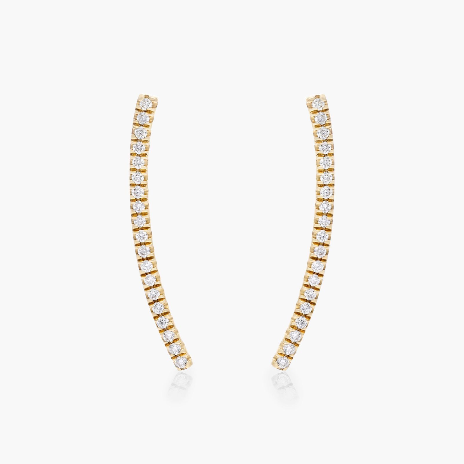 Curved Bar Diamond Climber Earrings In 14K Yellow Gold