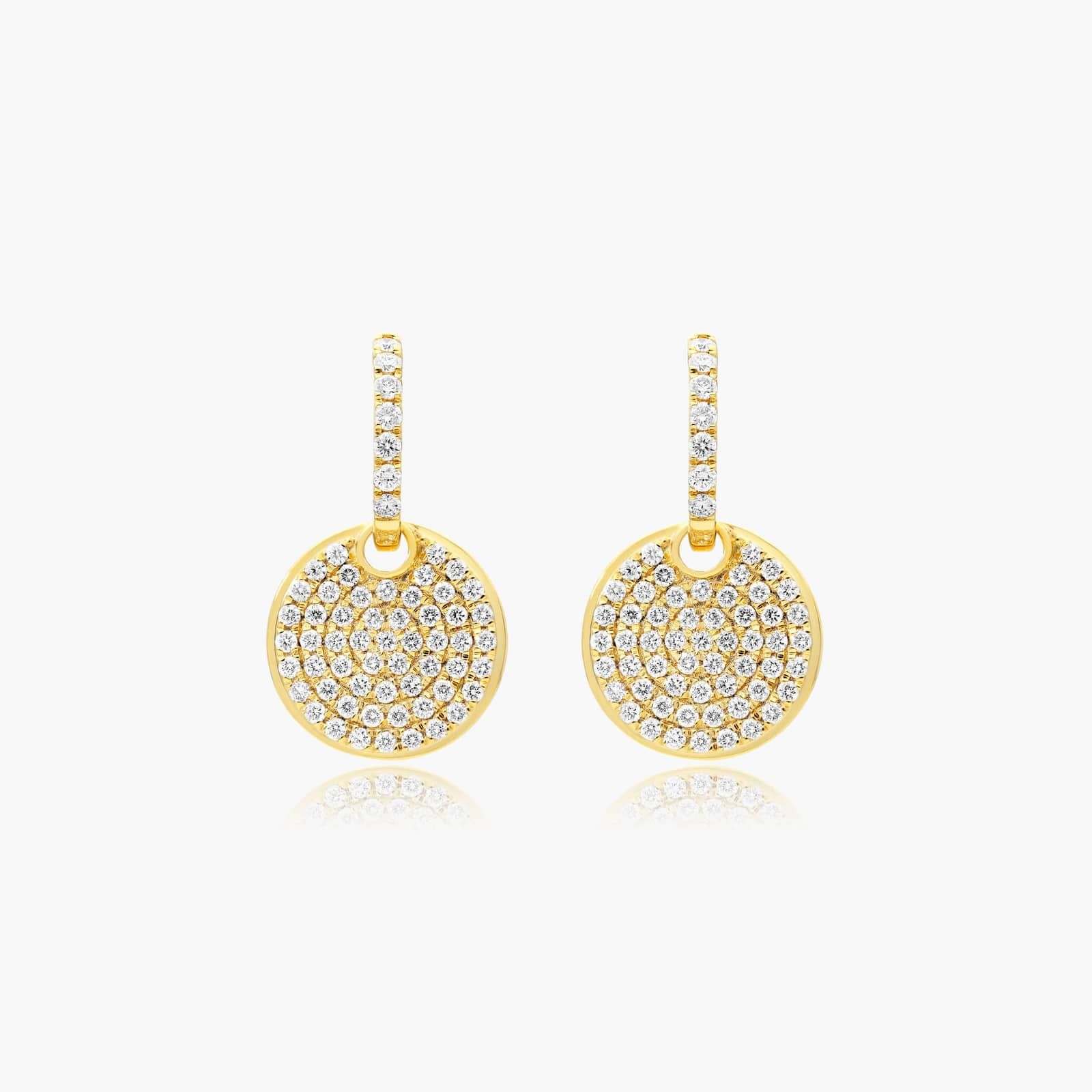 Diamond Disk Dangle Earrings In 14K Yellow Gold