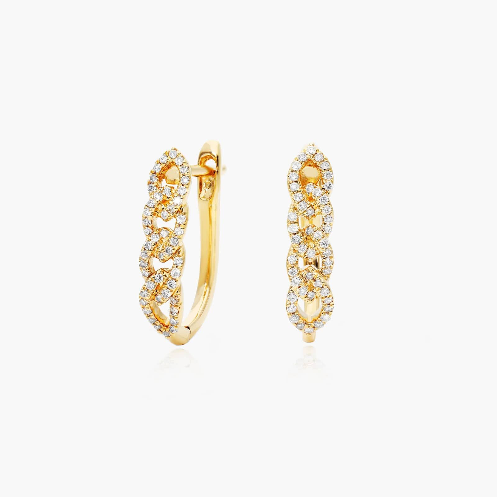 Chain Link Diamond Hoop Earrings In 14K Yellow Gold