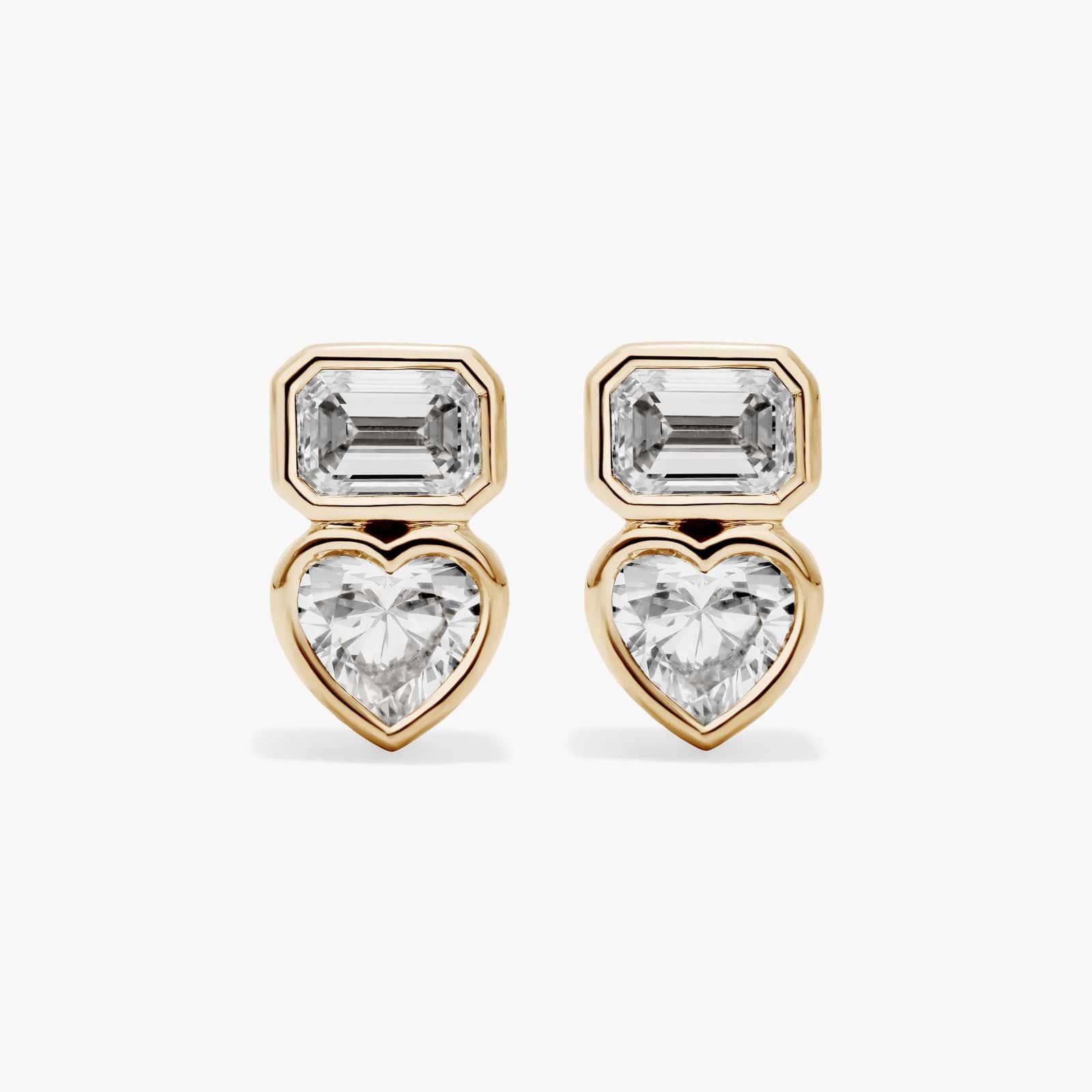 Fancy Bezel Drop Earrings With Emerald Cut and Heart Shaped Lab-Grown Diamonds In 14K Yellow Gold