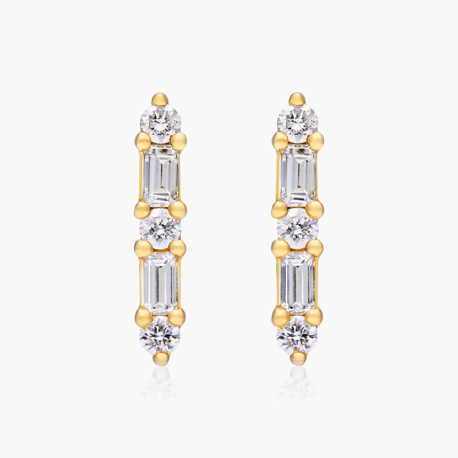 These fantastic wand stud earrings are crafted in 14K gold and combine sparkling round brilliant diamonds with stylish baguettes. Pushbacks secure the earrings in place.