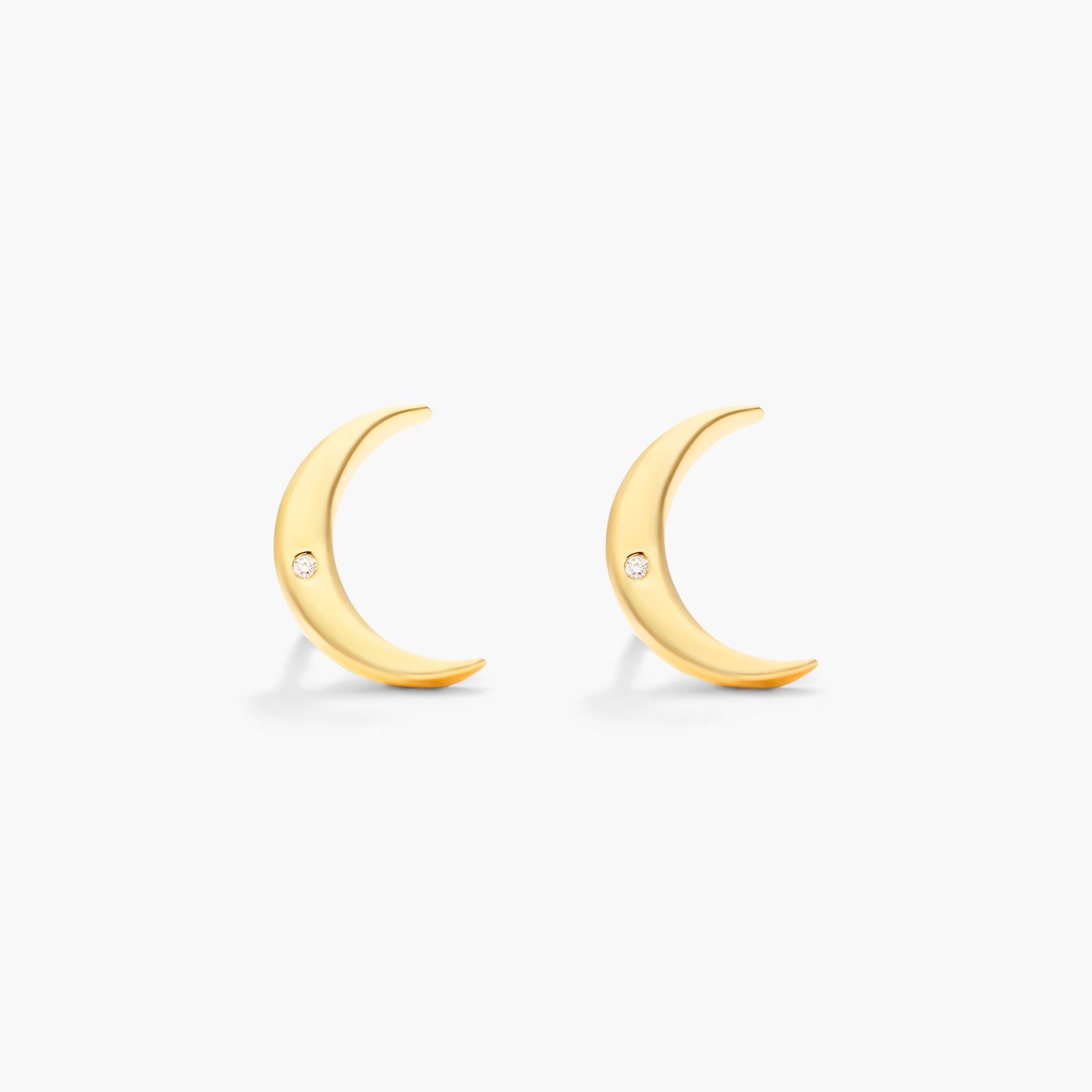 These half moon studs are simple yet elegant. Crafted in 14K gold with an accent diamond to add a touch of sparkle.