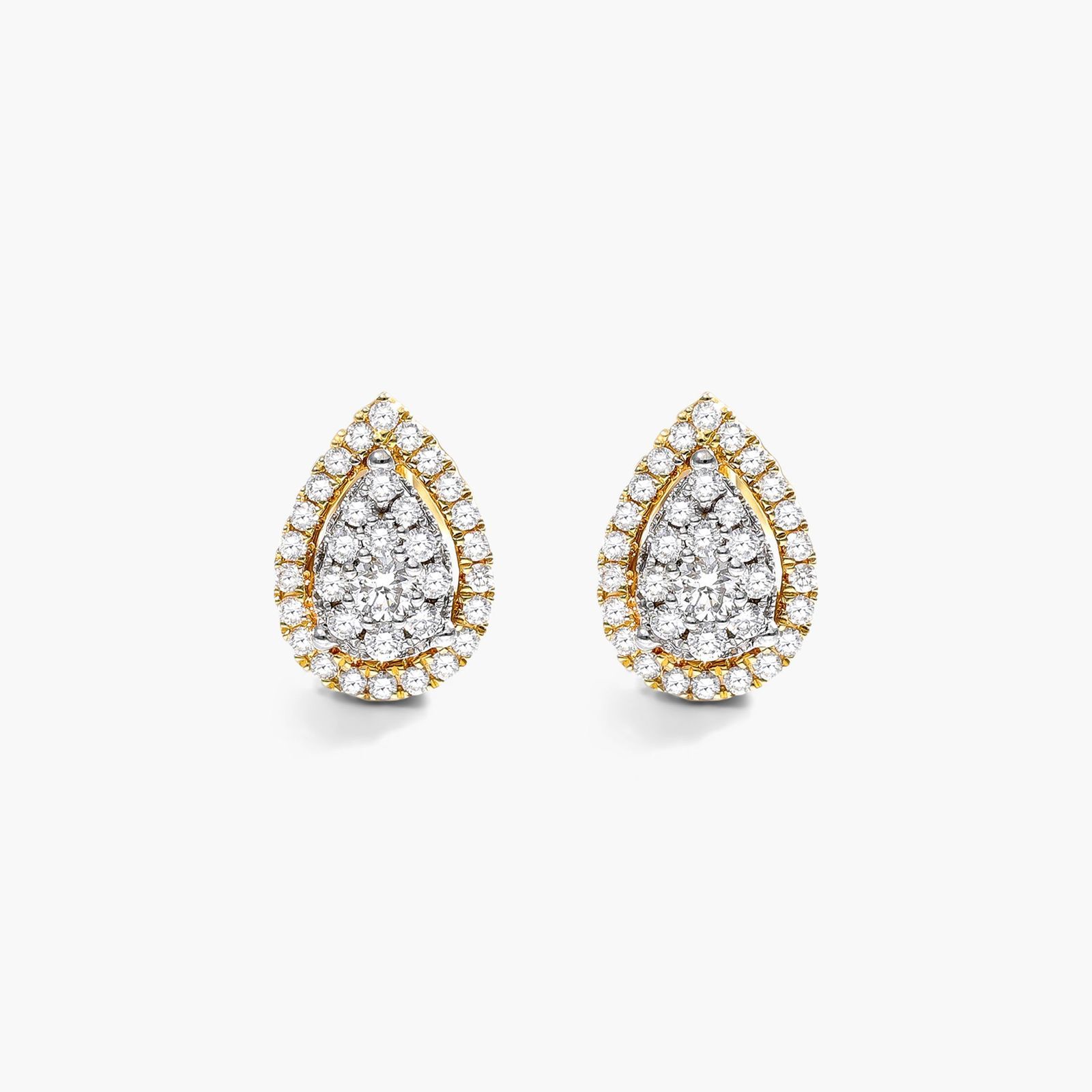 Pear Halo Cluster Diamond Stud Earrings In 14K Yellow Gold