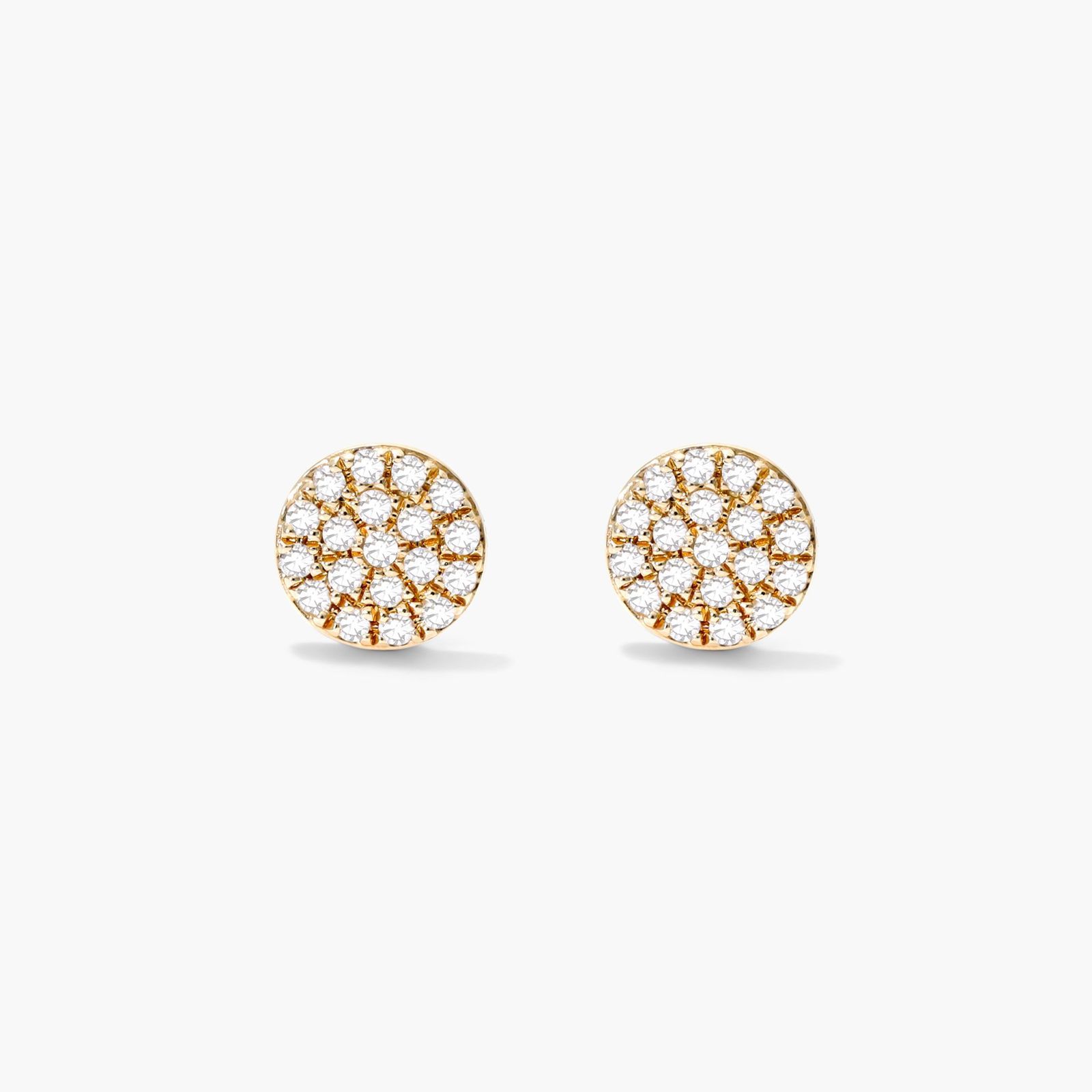 These petite diamond pavé circle studs are a contemporary take on a classic look. Set in 14K yellow gold, they perfect for everyday wear.