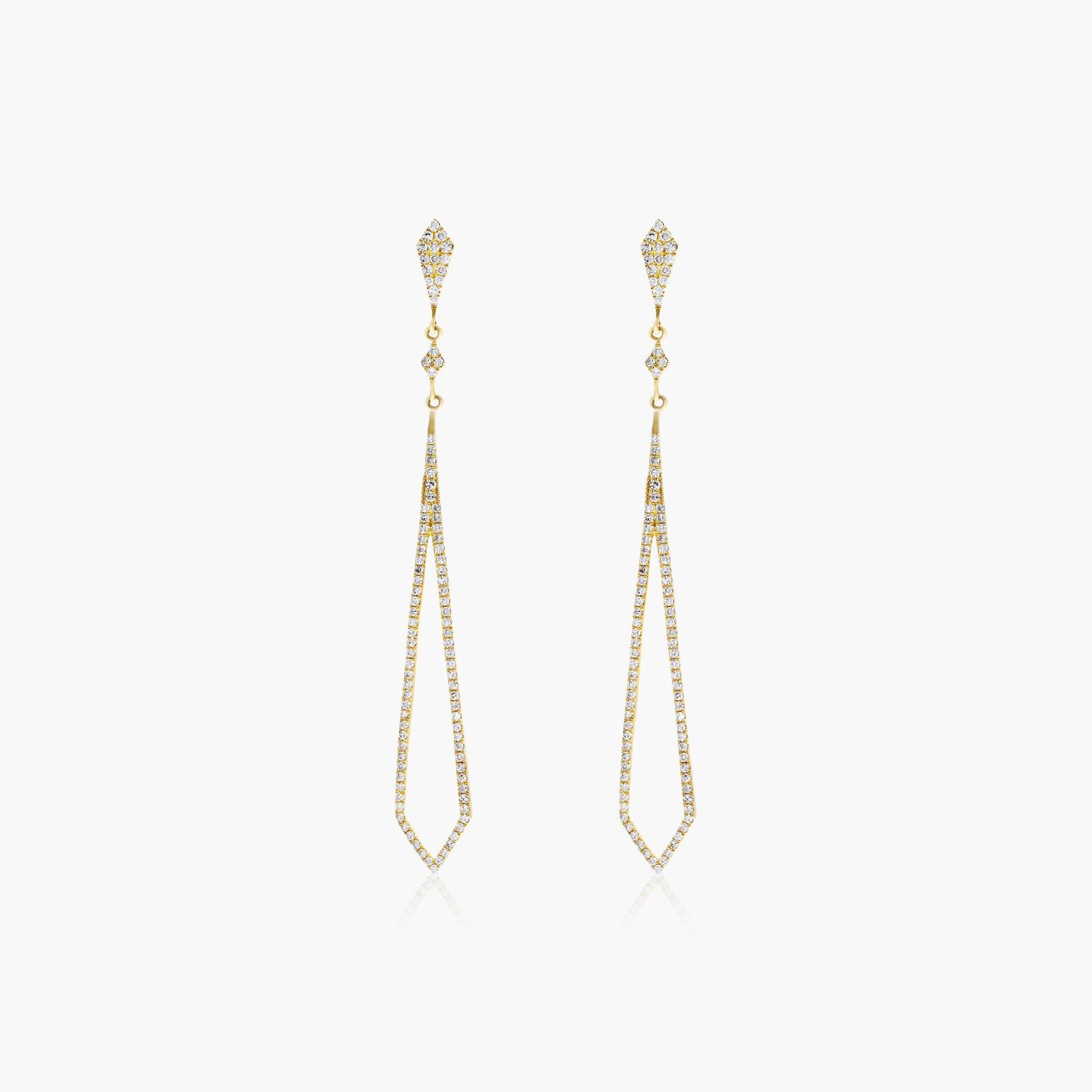 Petite Long Diamond Drop Earrings In 14K Yellow Gold