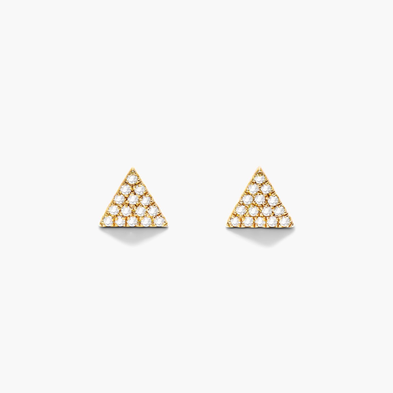 These petite pavé triangle stud earrings are the picture of modern elegance. Crafted in 14K yellow gold, these earrings are the perfect addition to your everyday look.