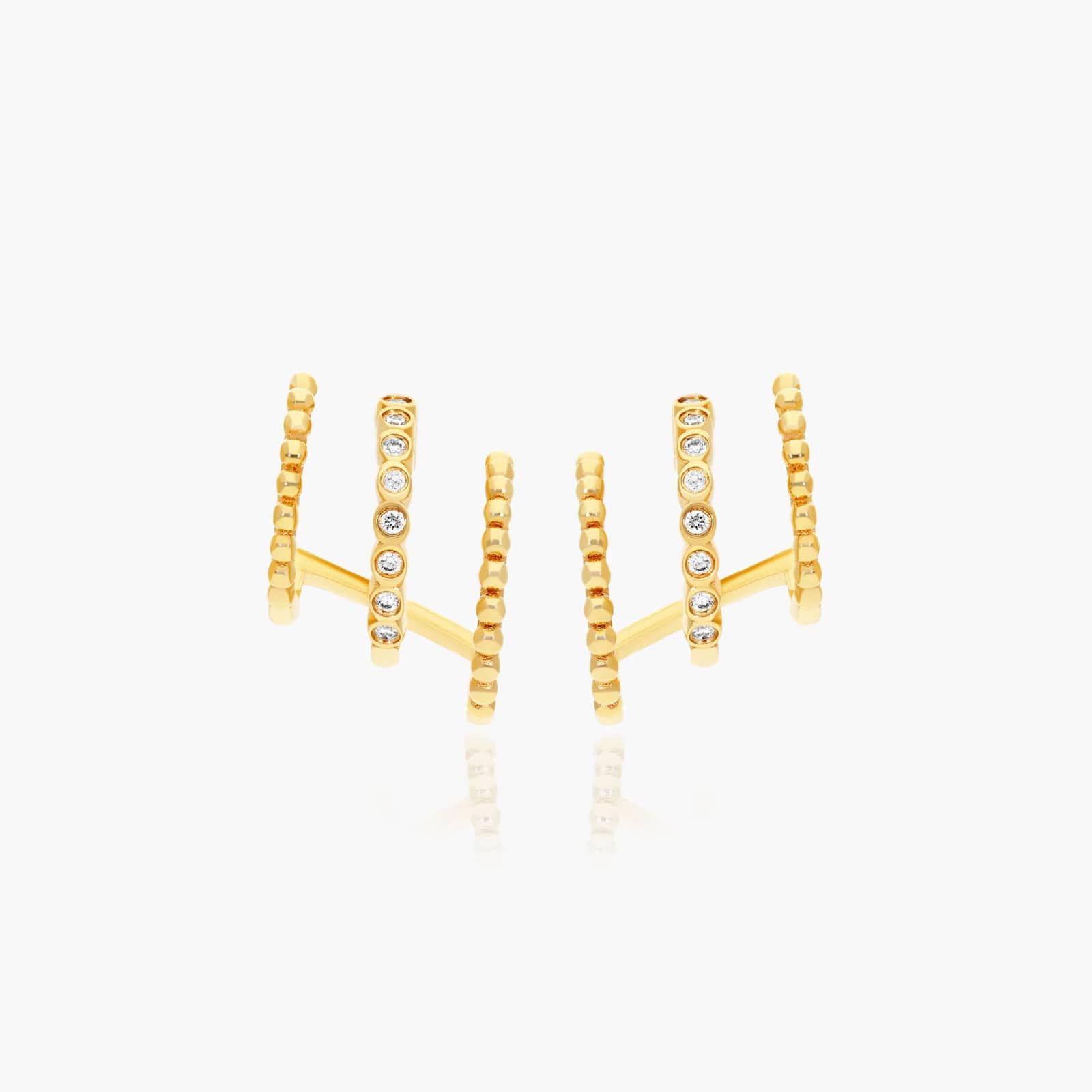 Bead Three in One Diamond Huggie Earrings In 14K Yellow Gold By Brevani