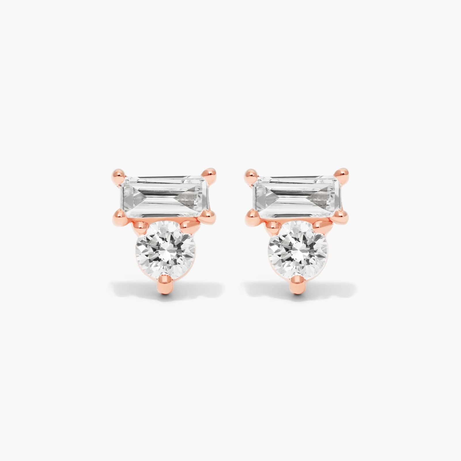 Modern and chic, these stud earrings stack round and baguette Lab-Grown diamonds that sarkle from a mile away. A clean and stylish design that you can layer or wear on its own.