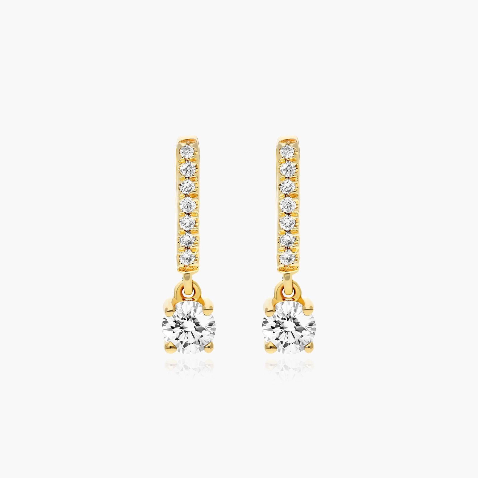 Take your evening attire from ready to resplendent with these gorgeous diamond drop earrings. Crafted in 14K gold, each exquisite dangle features a round diamond secured in a prong set basket. These post earrings secure comfortably with friction backs.