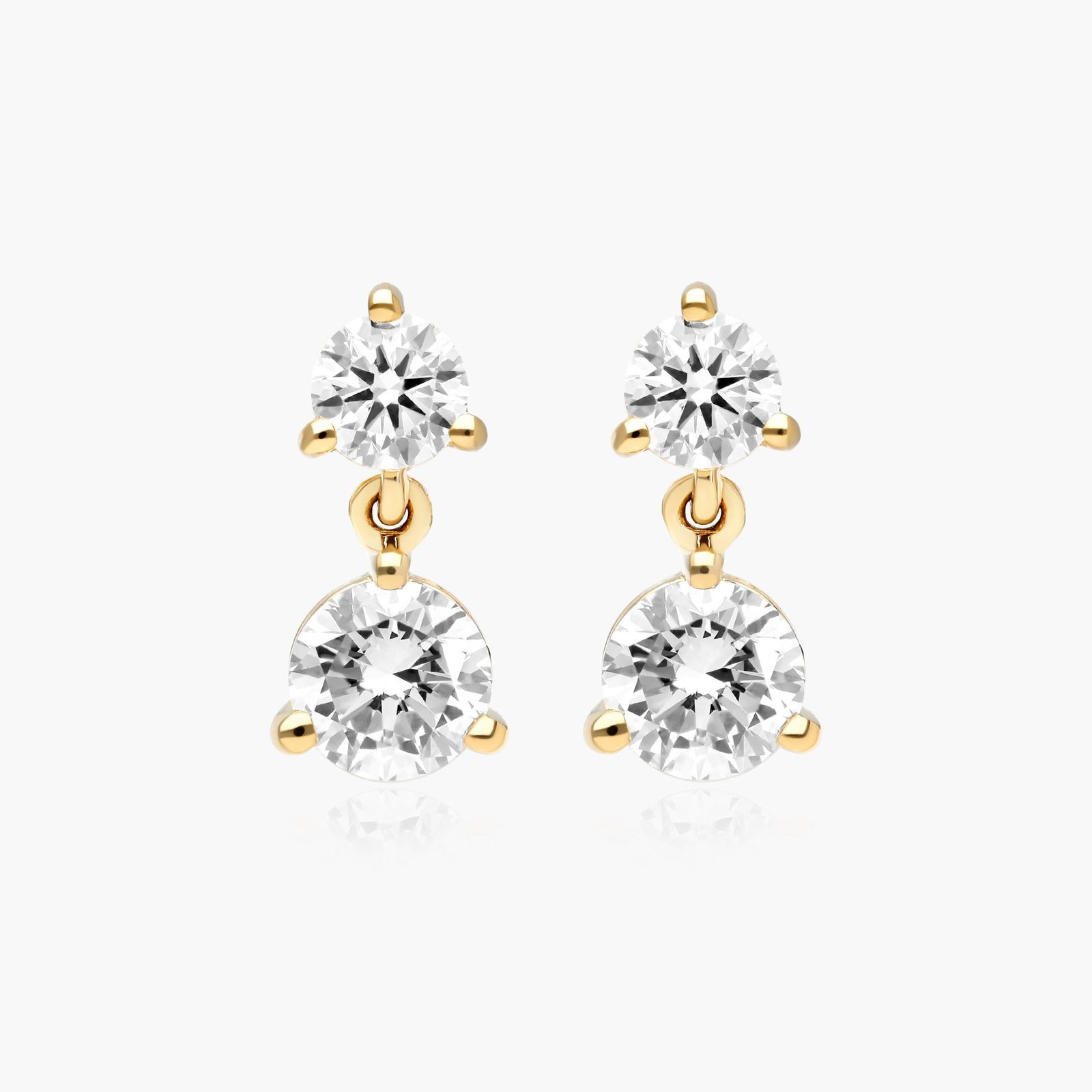 Simple and classic, this fashion drop earring is certain to become your new go-to look. Crafted in 14K gold, this linear two-stone drop showcases a graduated-size Lab-Grown diamonds. Double notch posts secure comfortably with friction backs.