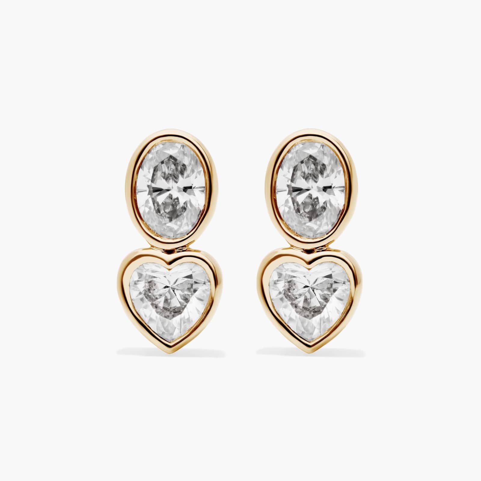 Fancy Bezel Drop Earrings With Oval Cut and Heart Shaped Lab-Grown Diamonds In 14K Yellow Gold