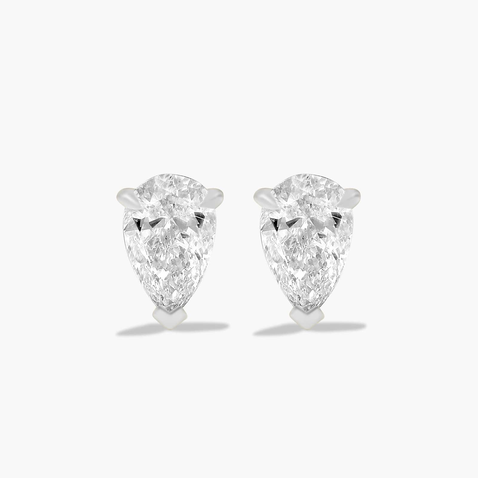 This pair of classic pear shape diamond earrings feature a tapered basket, showcasing the unique characteristics and striking outline of a pear shape diamond. Splinters of light shimmer and shine with every move.