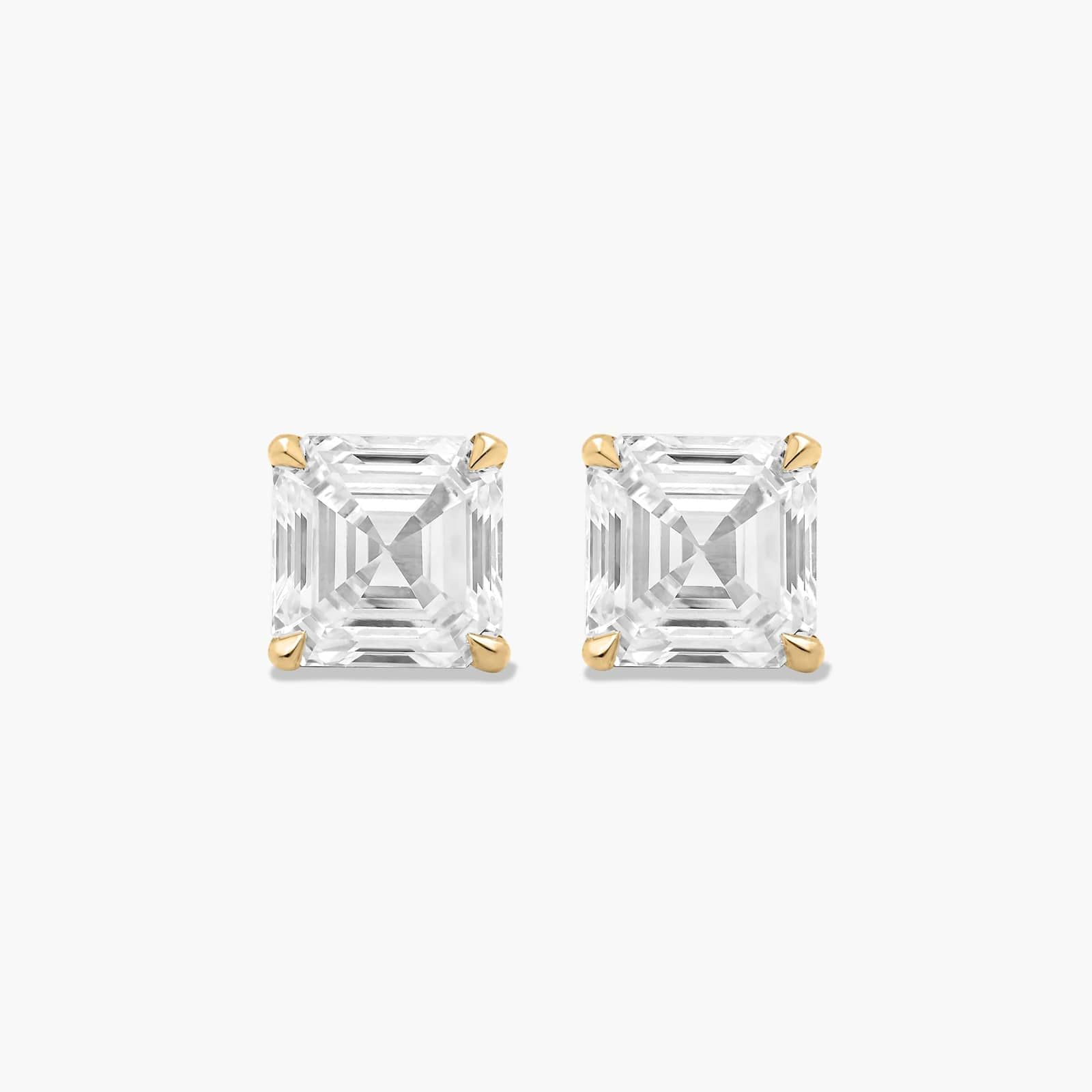 Asscher Cut 1 CTW Diamond Stud Earrings In 14K Yellow Gold