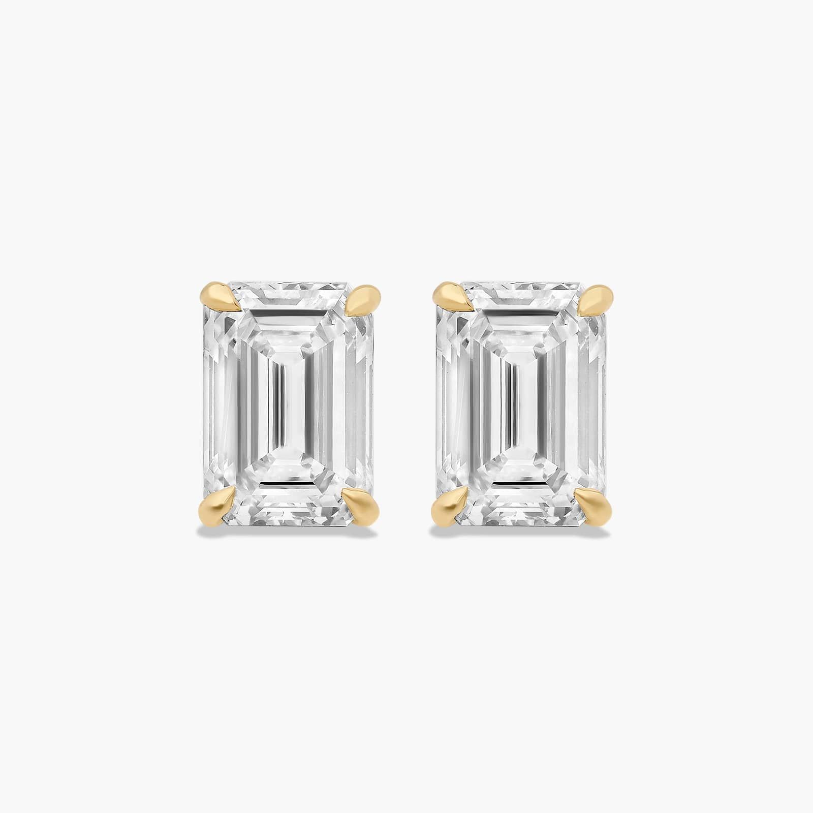 This pair of classic, emerald shape Lab-Grown diamond earrings feature a tapered basket that showcases the unique characteristics of an emerald shape Lab-Grown diamond. The bold flashes of light and a luminescent nature capture the eye with every move.