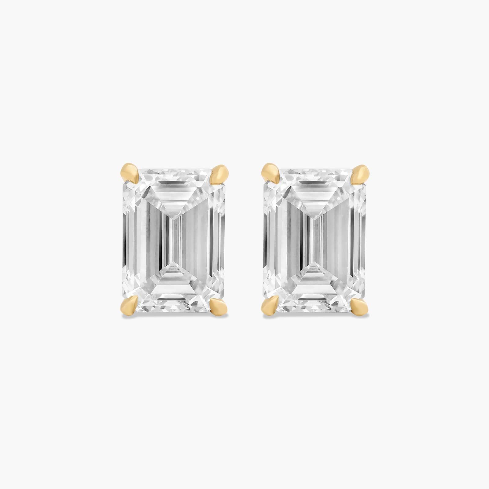 This pair of classic, emerald shape lab-grown diamond earrings feature a tapered basket that showcases the unique characteristics of an emerald shape lab-grown diamond. The bold flashes of light and a luminescent nature capture the eye with every move.