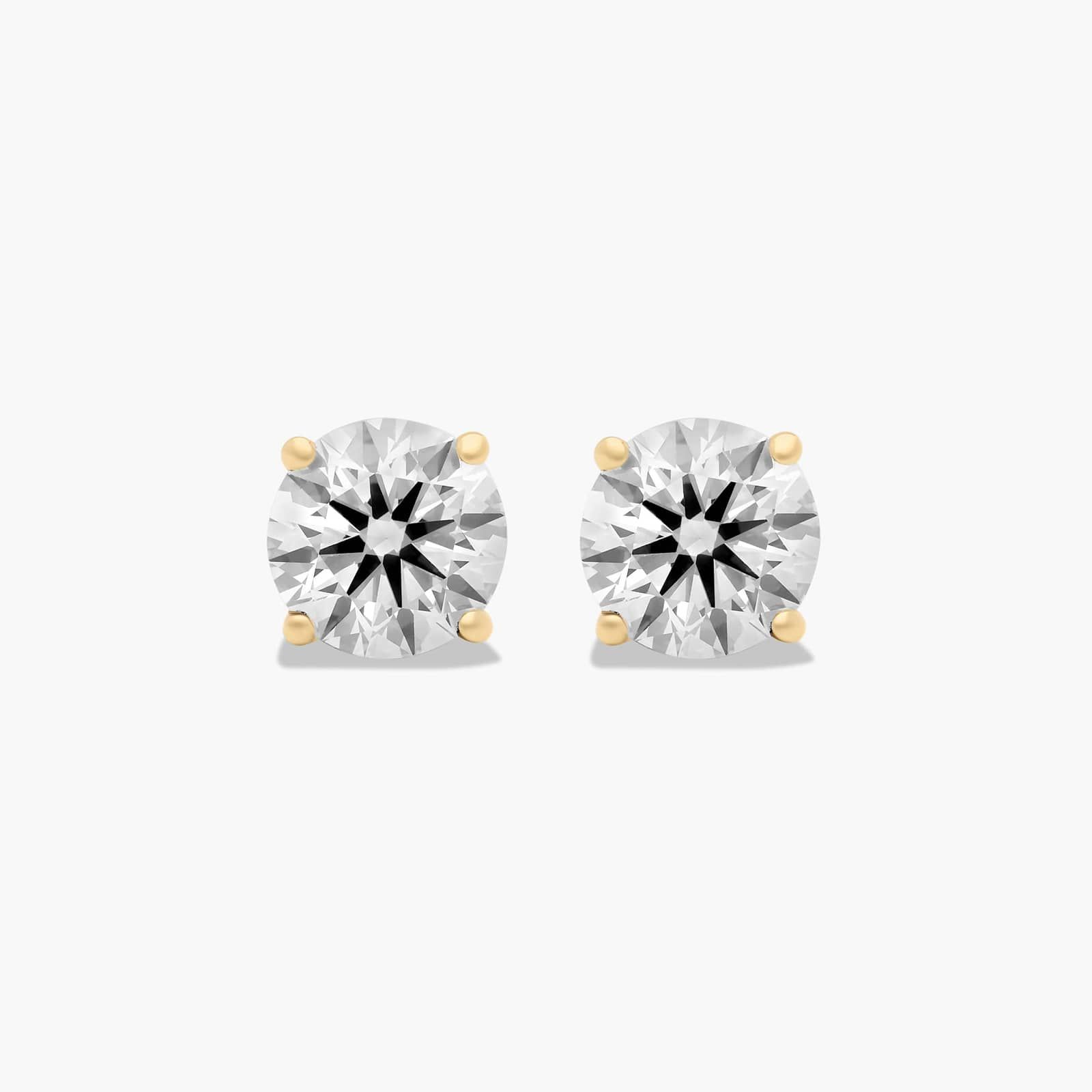 14K Yellow Gold Four Prong Round Brilliant Diamond Stud Earrings (1.50 CTW - F-G / VS1-VS2)