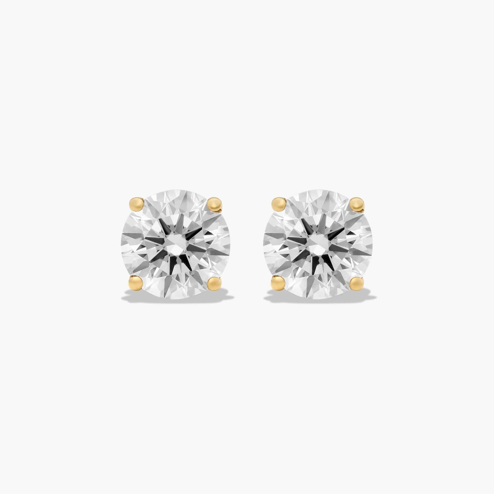 Four Prong 2.5 CTW Round Diamond Stud Earrings In 14K Yellow Gold