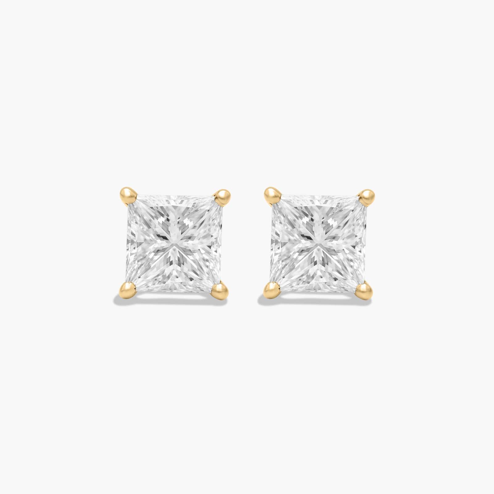 Princess Cut 2 CTW Diamond Stud Earrings In 14K Yellow Gold