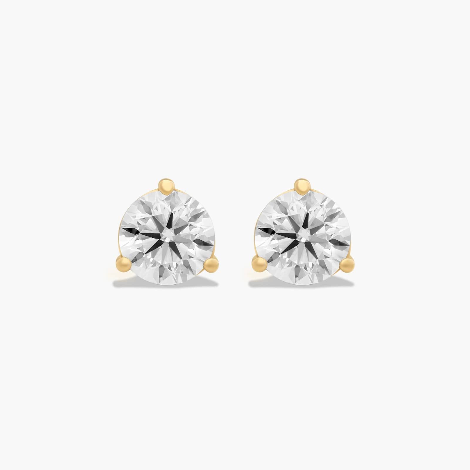 14K Yellow Gold Three Prong Martini Round Brilliant Diamond Stud Earrings (1.00 CTW - F-G / VS1-VS2)